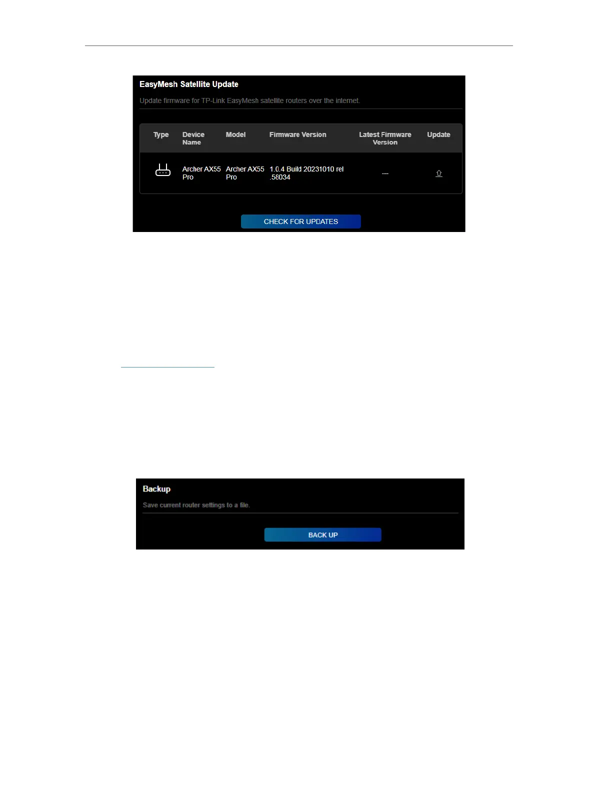 Click BACK UP to save a copy of the current settings to your local computer. A ‘.bin’ file