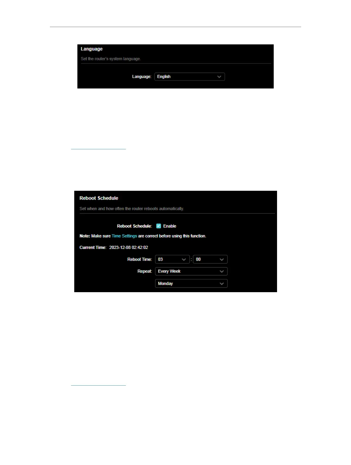4. Specify the Reboot Time when the router reboots and Repeat to decide how often it