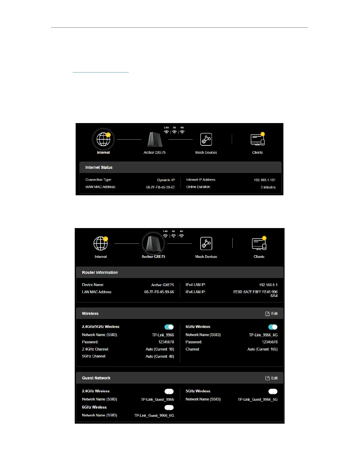 the wireless network or guest network, or click Edit to change related settings.