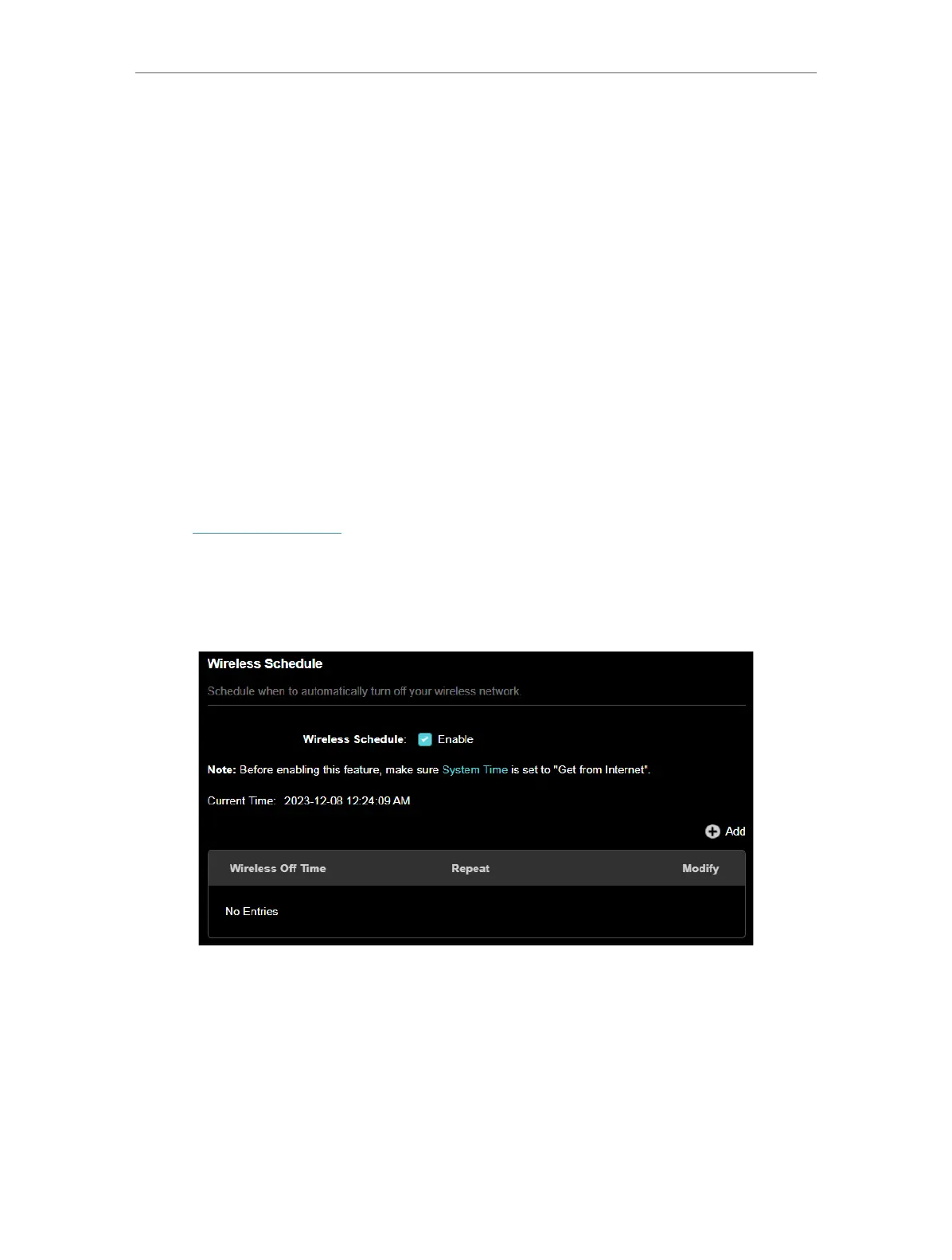 3. Enable the Wireless Schedule feature.