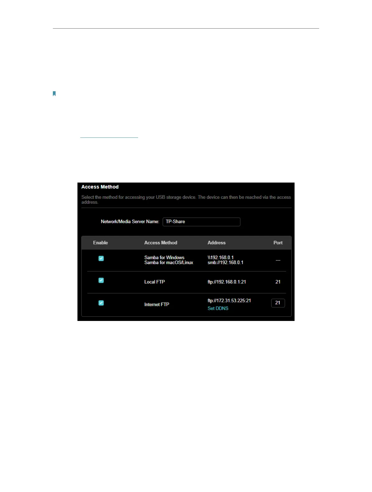 4. Refer to the following table to access your USB disk remotely.