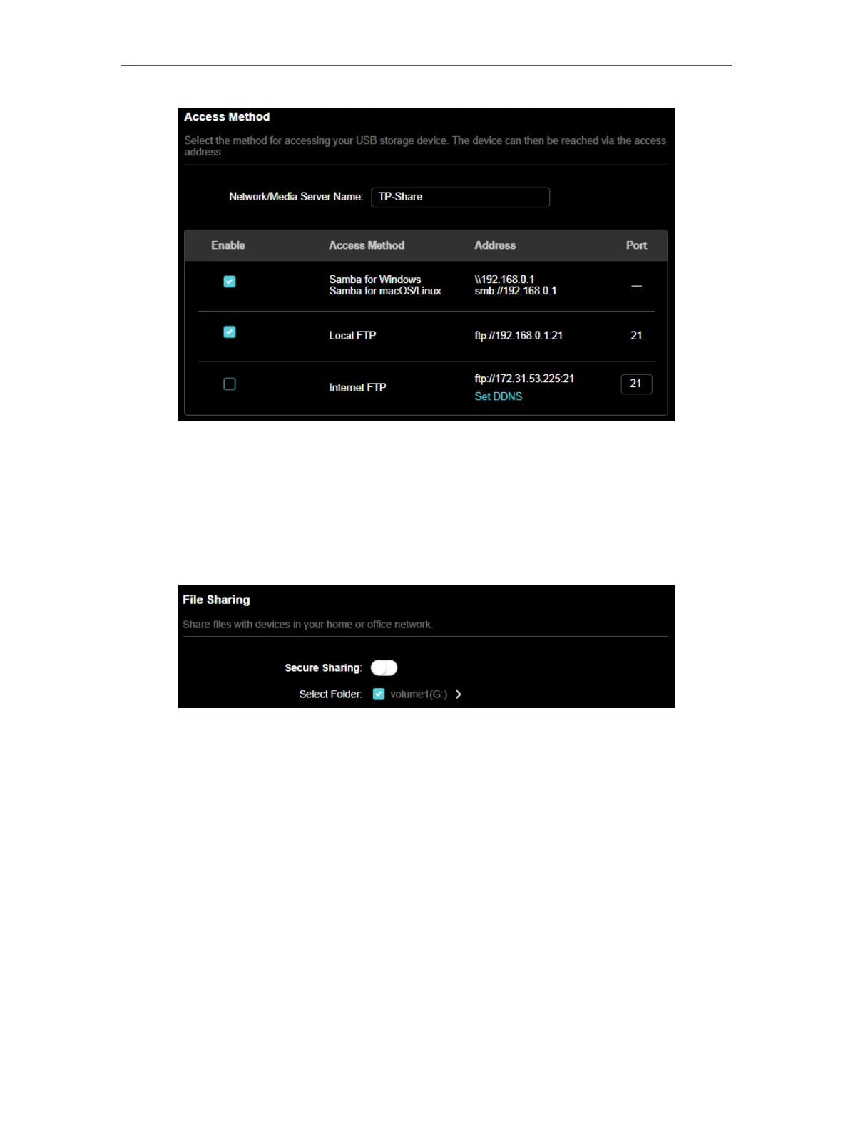 Focus on the File Sharing section. Specify sharing folders that you want to share and