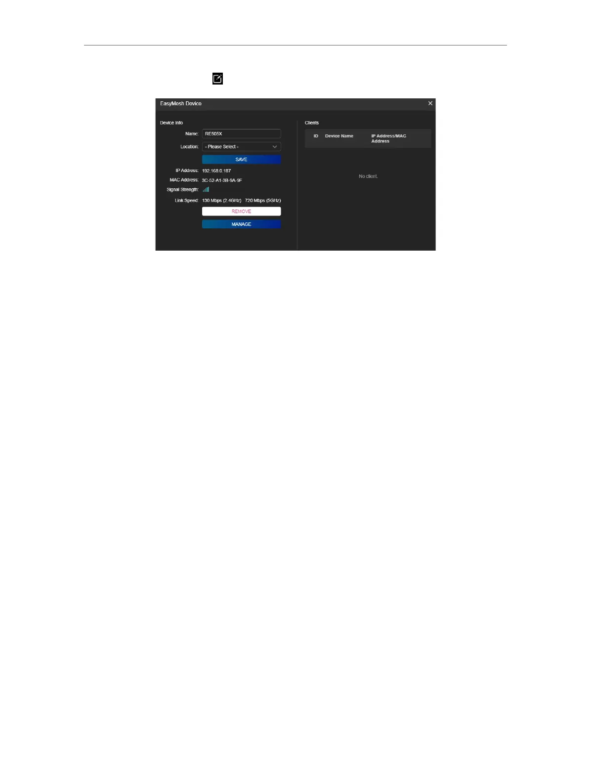 Click REMOVE to delete this device from the EasyMesh network.