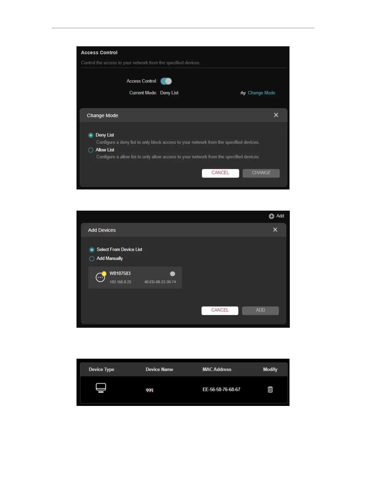 selected devices have been successfully added to the Deny List.