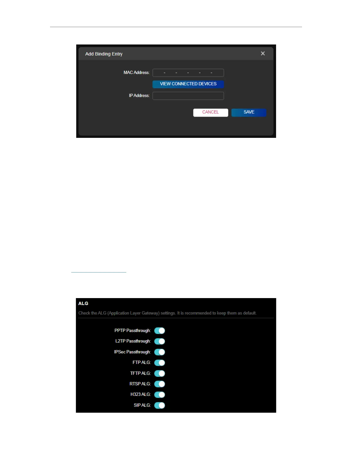 as FTP, TFTP, H323 etc. It is recommended to keep the default settings.