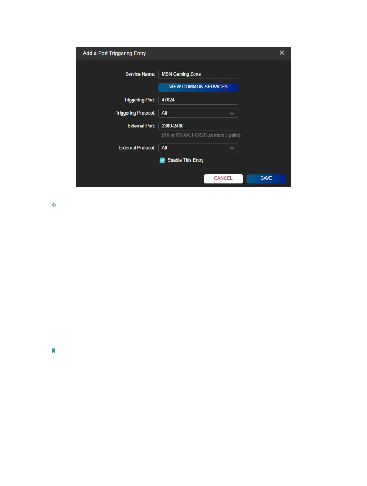 should verify the external ports the application uses first and enter them into External Port field according to the