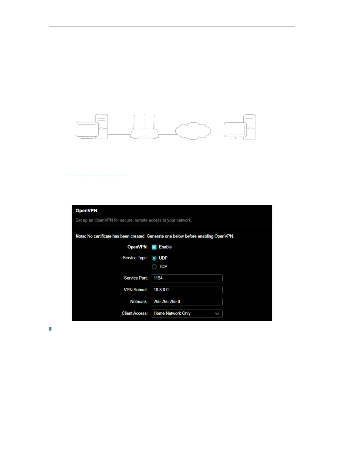 • The first time you configure the OpenVPN Server, you may need to generate a certificate before you enable the VPN