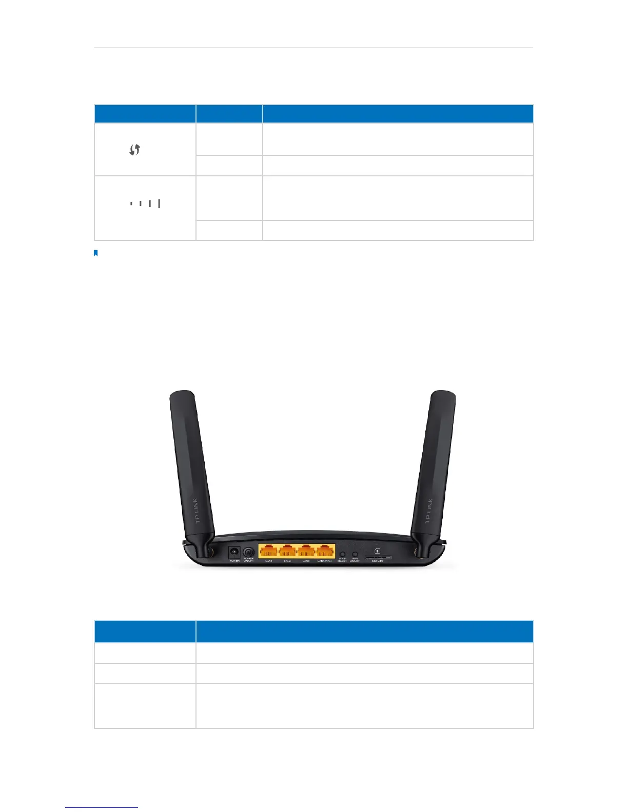 POWER For connecting the router to power socket via the provided power adapter.