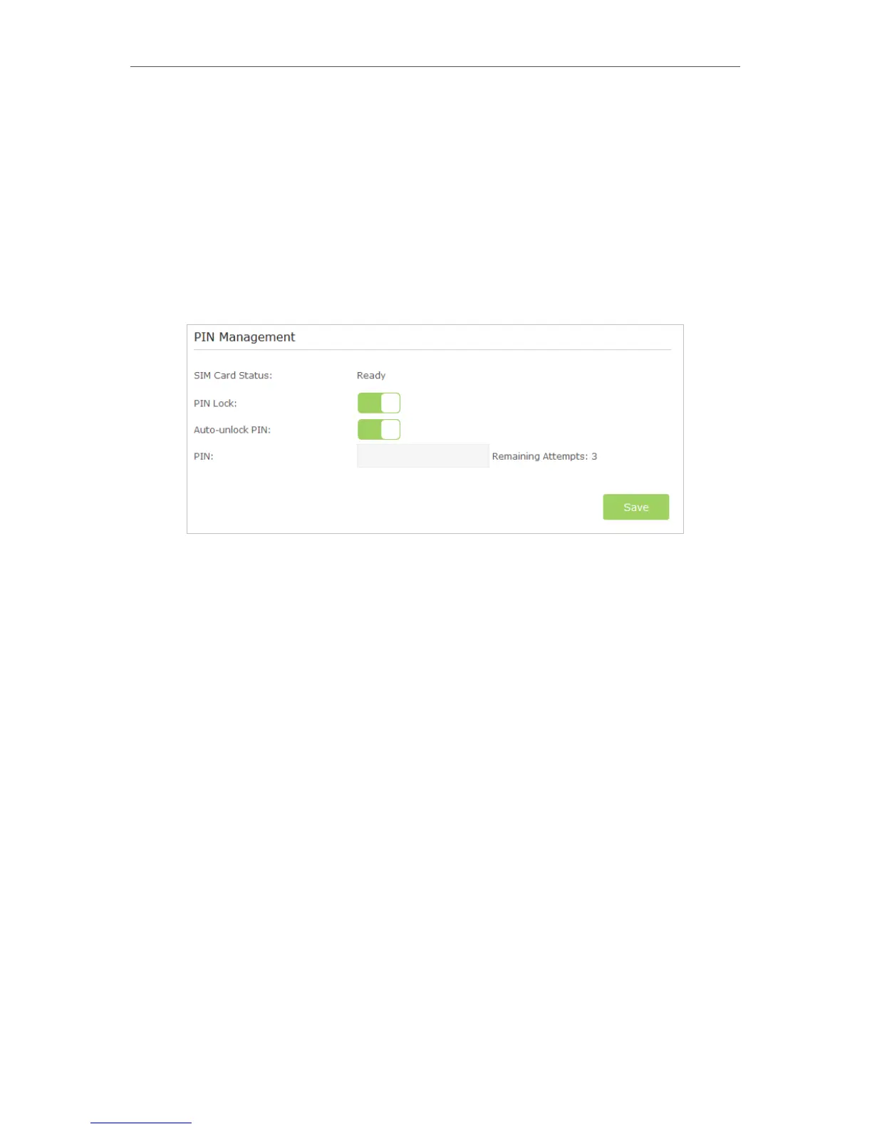 • Auto-unlock PIN: When the PIN is required upon router restarting or inserting a SIM