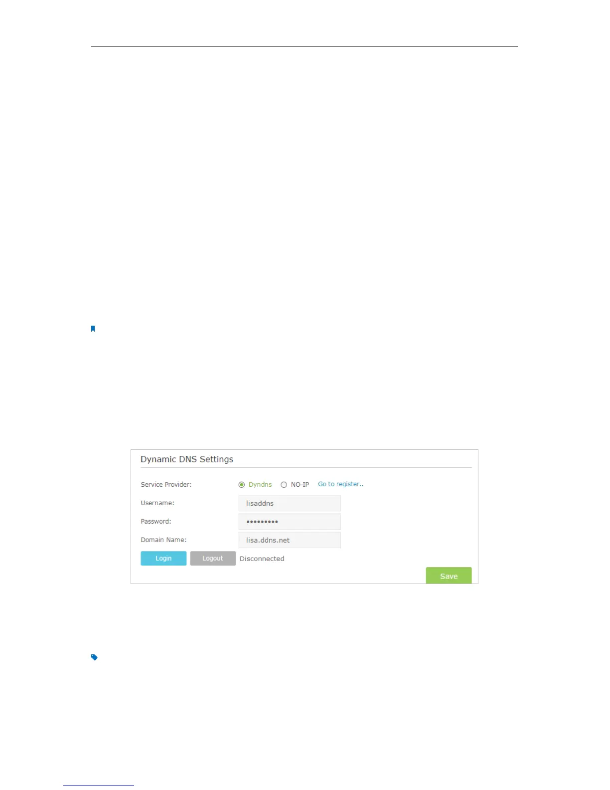 4. Enter the username, password and domain name of the account (such as lisa.ddns.