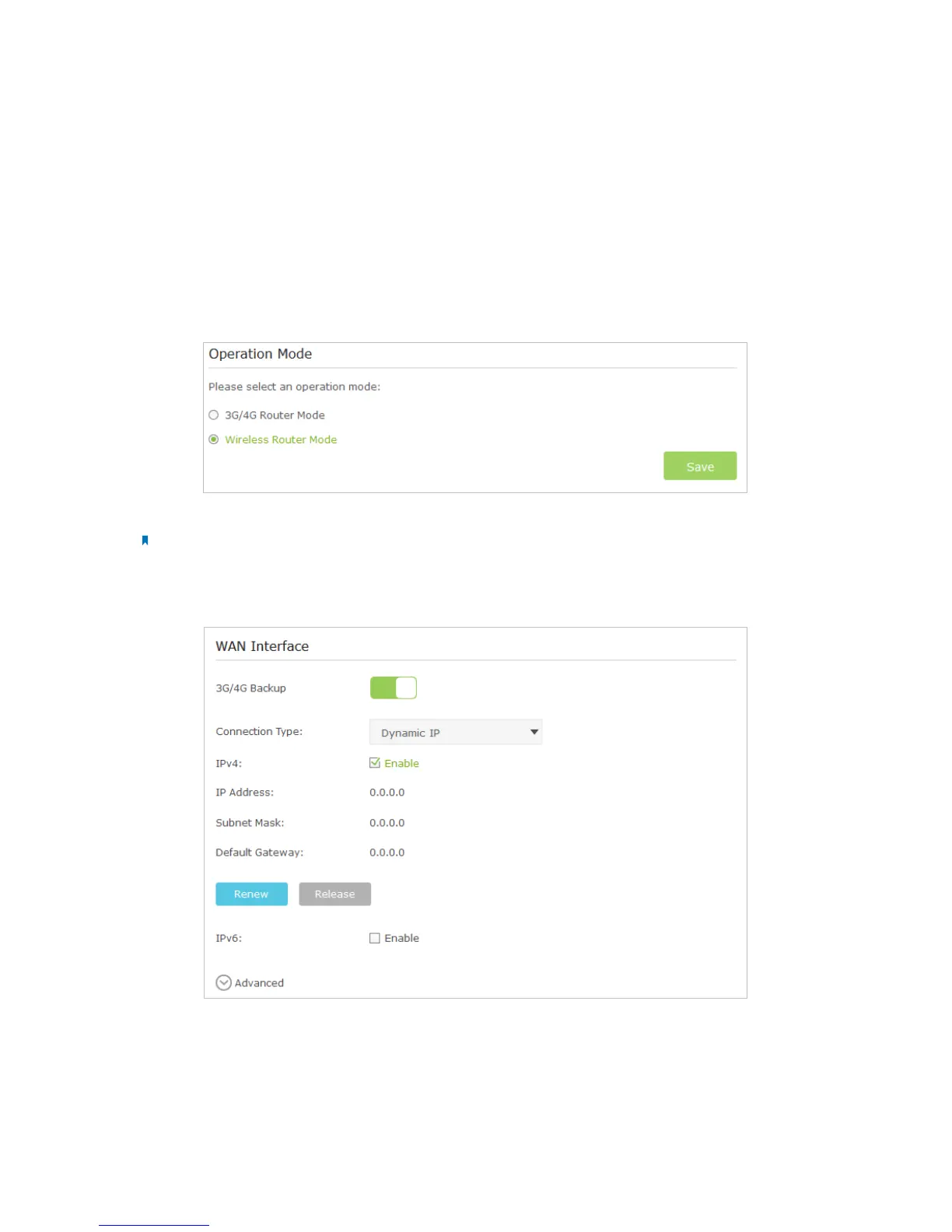 3. Go to Advanced > Operation Mode page.