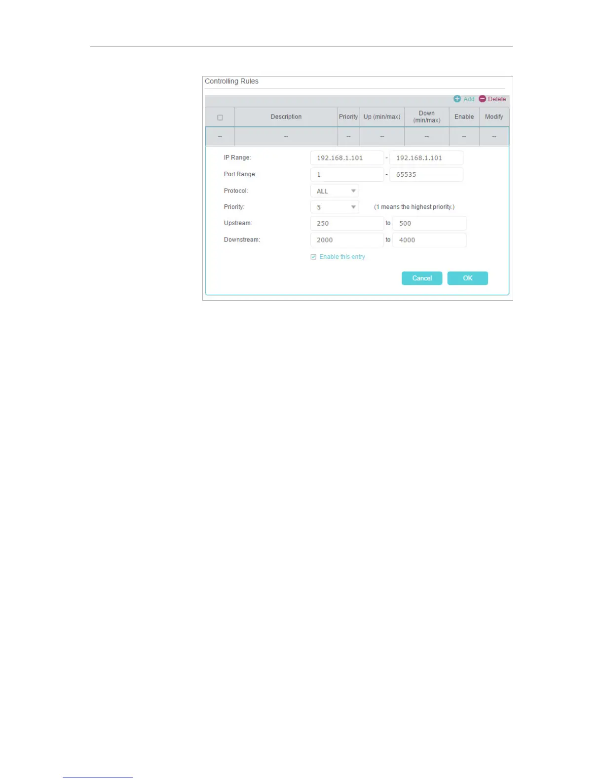 5 ) Upstream/Downstream - Enter the bandwidth according