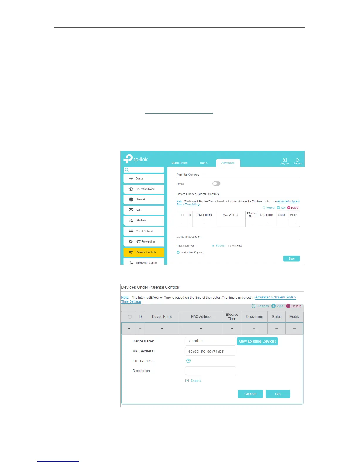 2. Go to Basic or Advanced > Parental Controls and enable