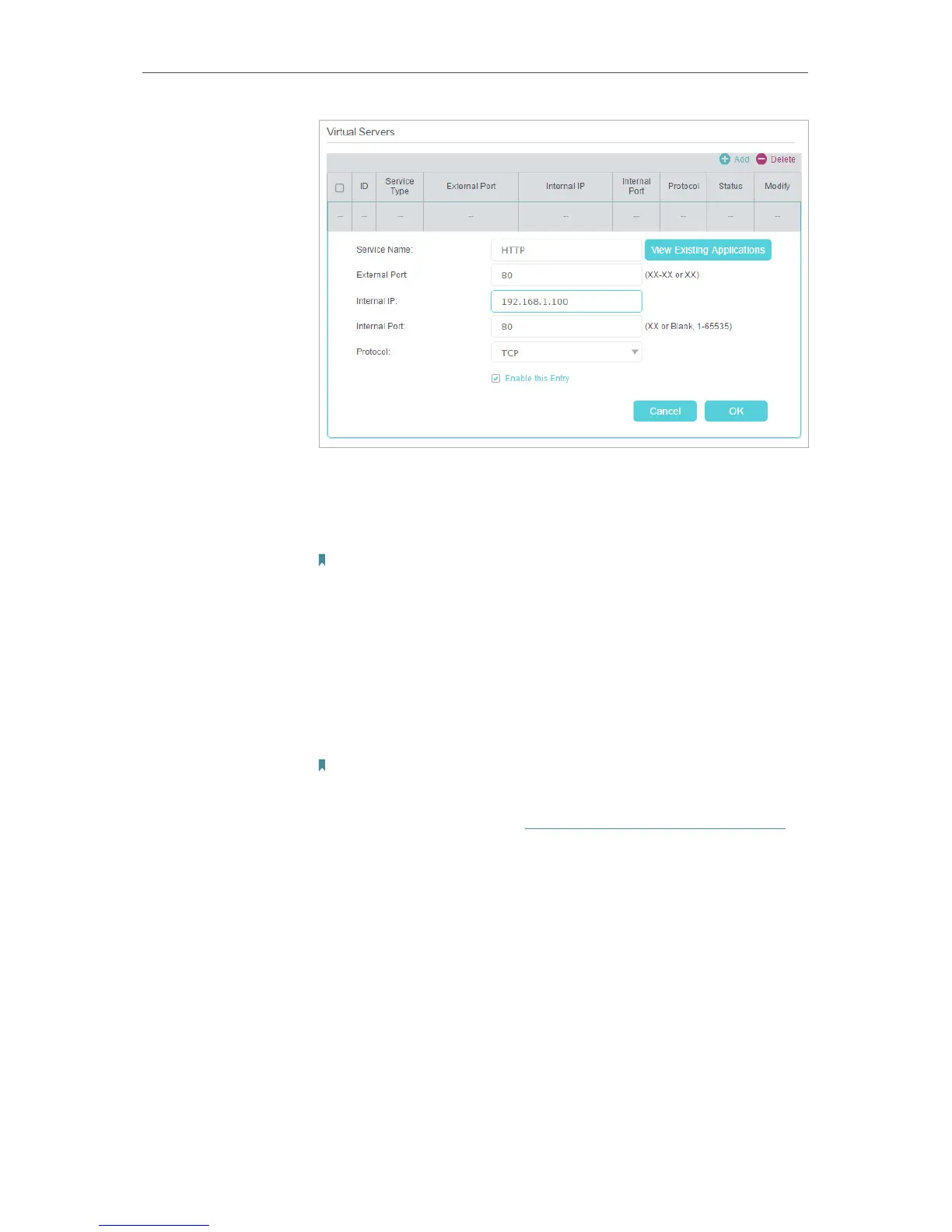 1. It is recommended to keep the default settings of Internal Port and Protocol