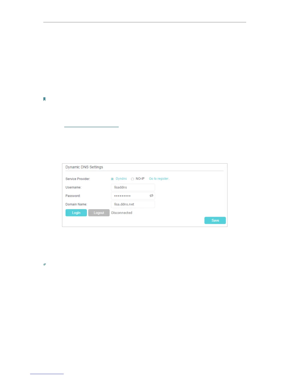 4. Enter the username, password and domain name of the account (such as lisa.ddns.