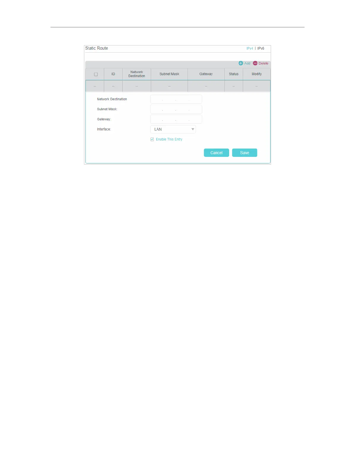 route. This IP address cannot be on the same subnet with the WAN IP or LAN IP of the