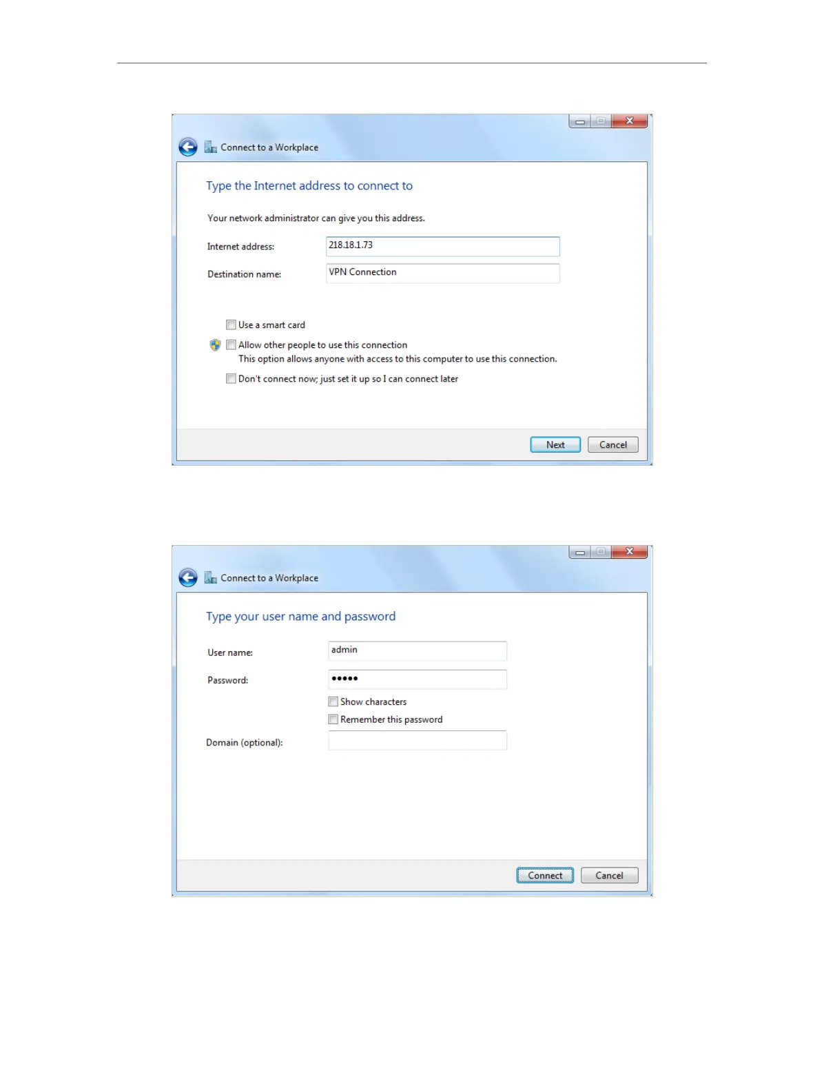 6. Enter the User name and Password you have set for the PPTP VPN server on your