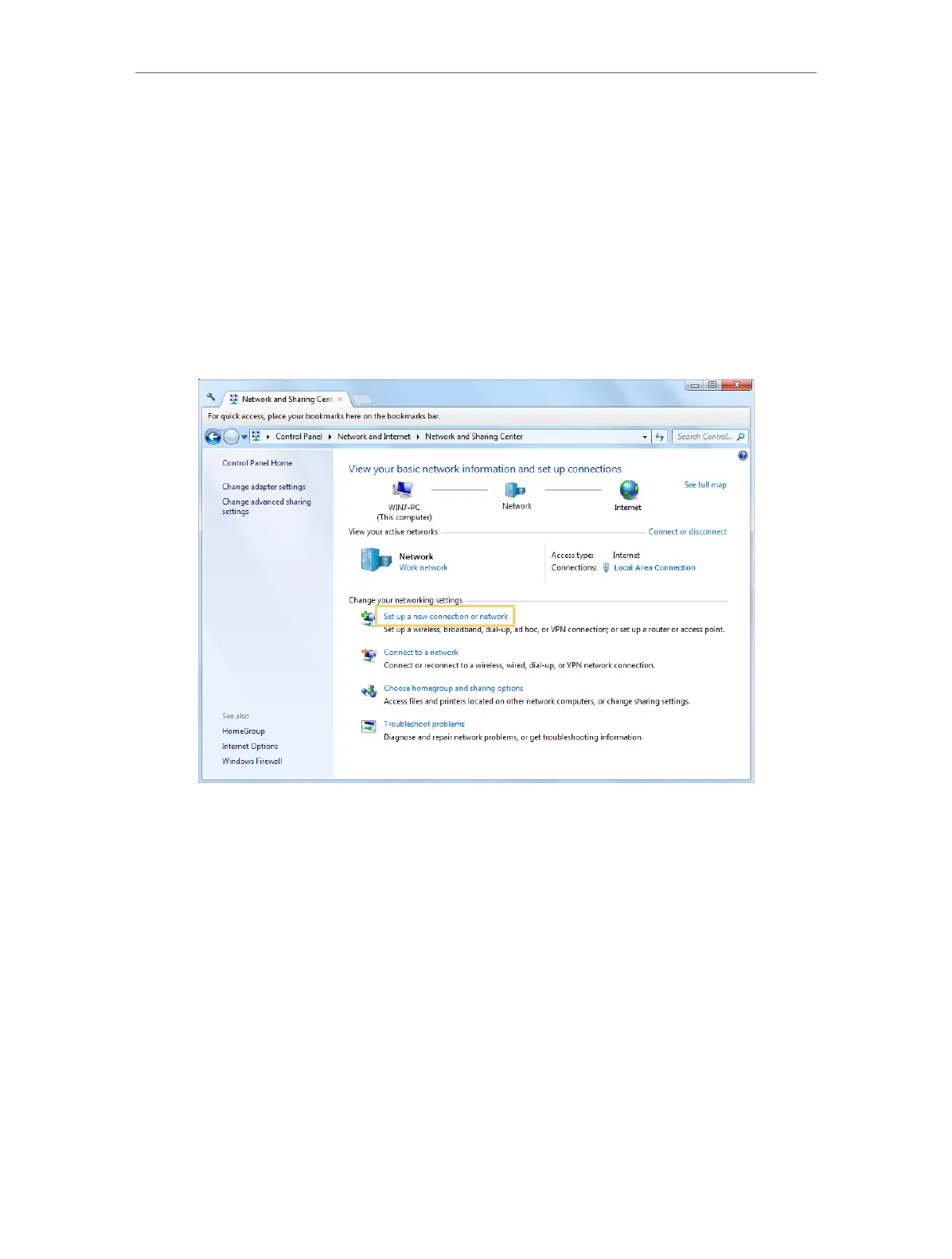 1. Go to Start > Control Panel > Network and Internet > Network and Sharing Center.
