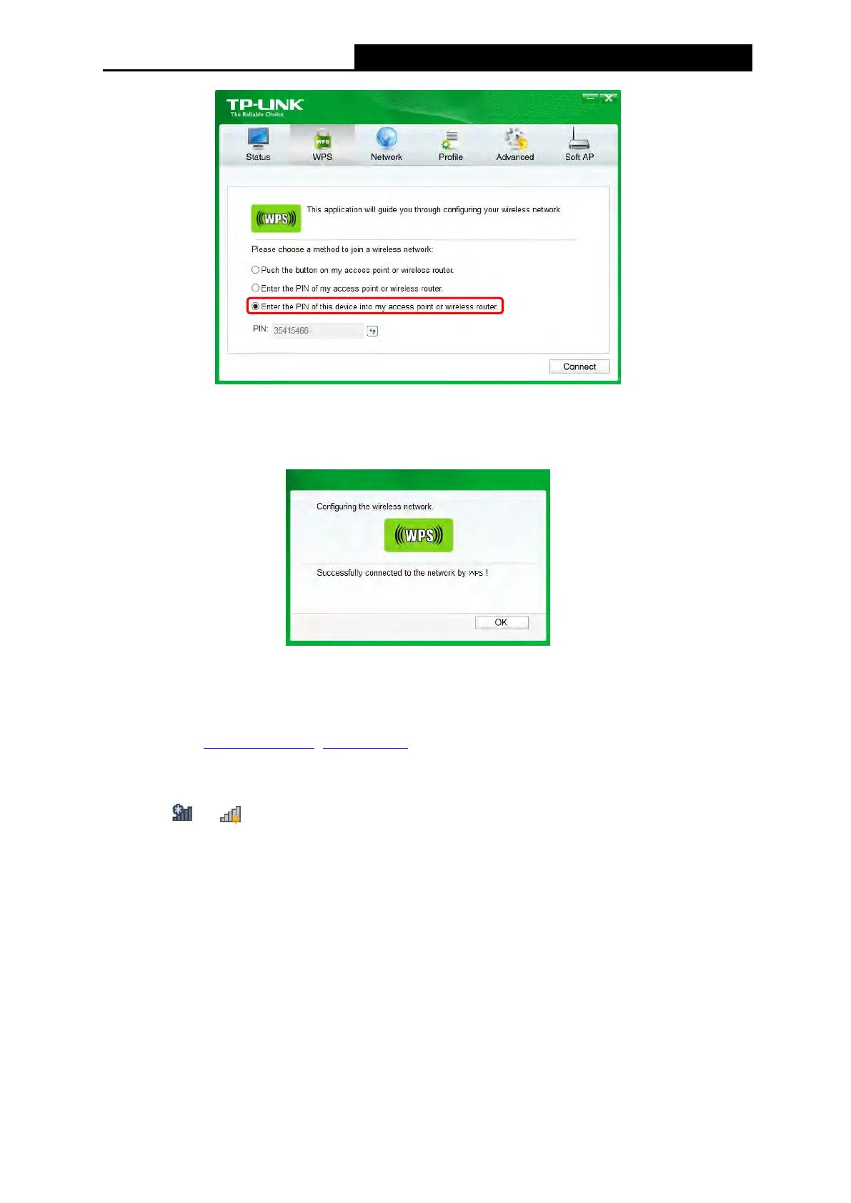 3. The following screen indicates a successful connection by WPS. Click OK.