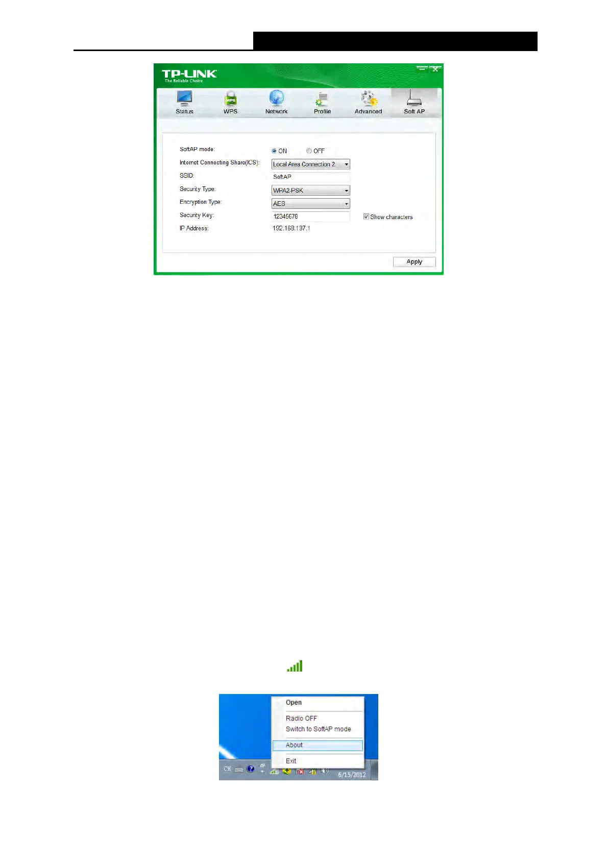 version) and the Driver version. Right-click (TP-LINK Utility icon) in the system tray and