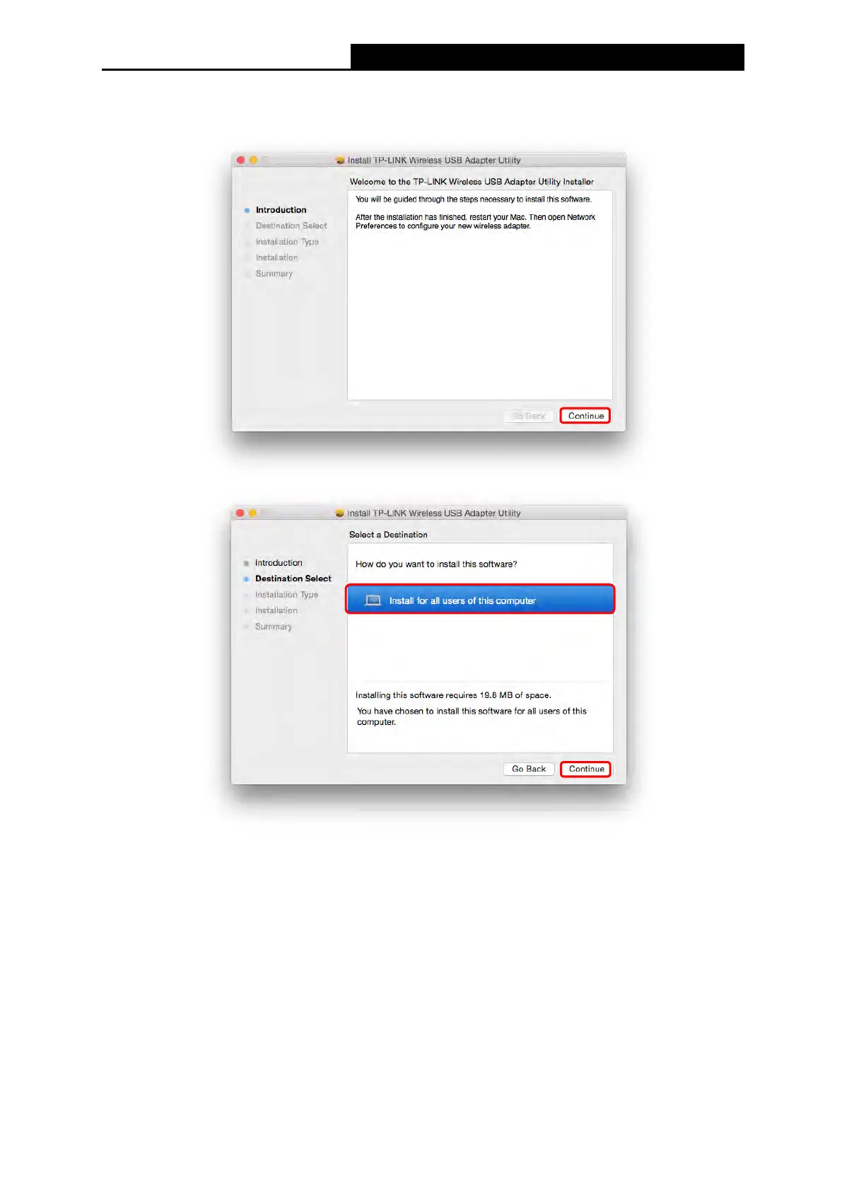 5. The Install TP-LINK Wireless USB Adapter Utility window will appear. Click Continue