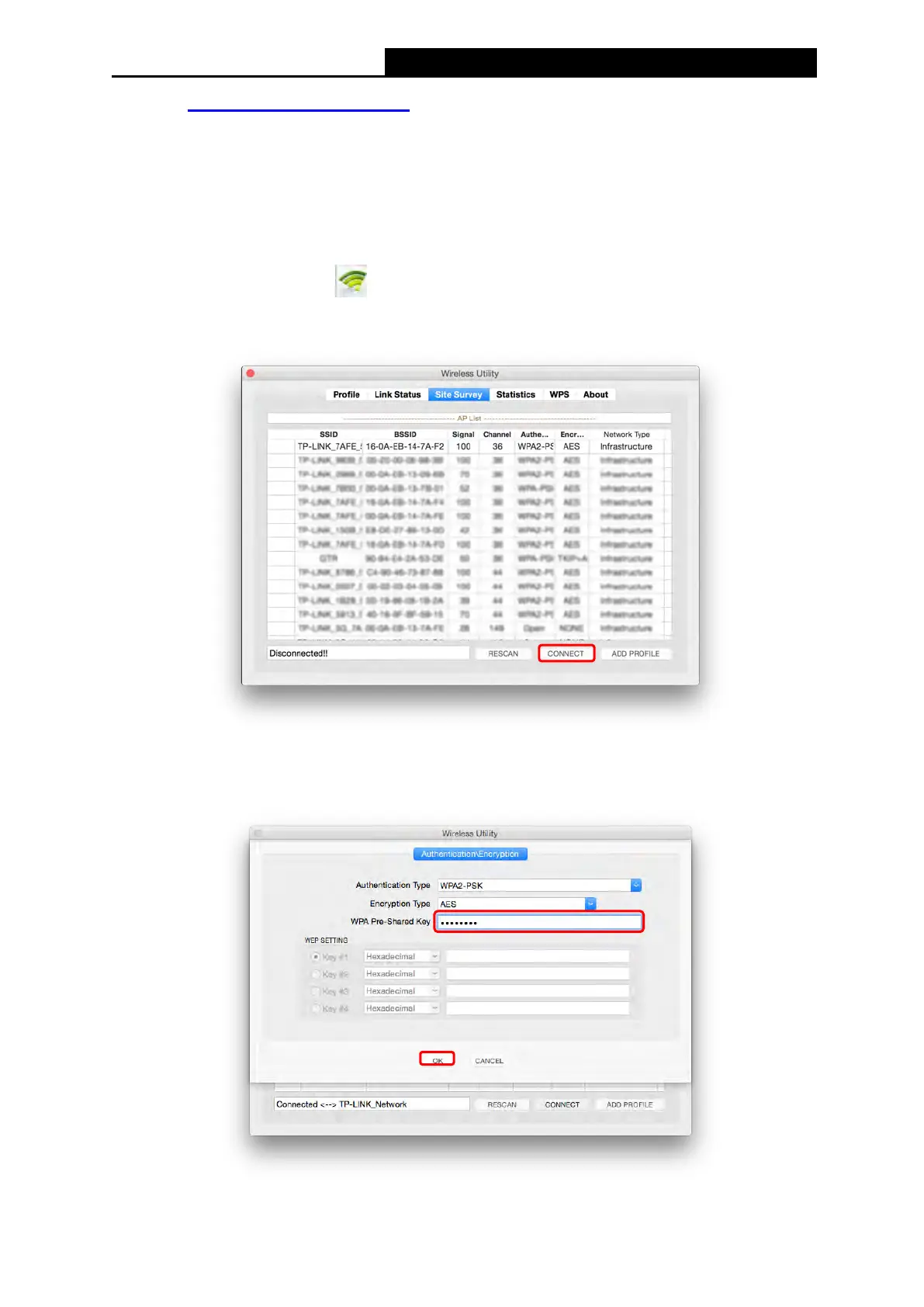 1. Open the TP-LINK Utility and select Site Survey tab. Then select the network you
