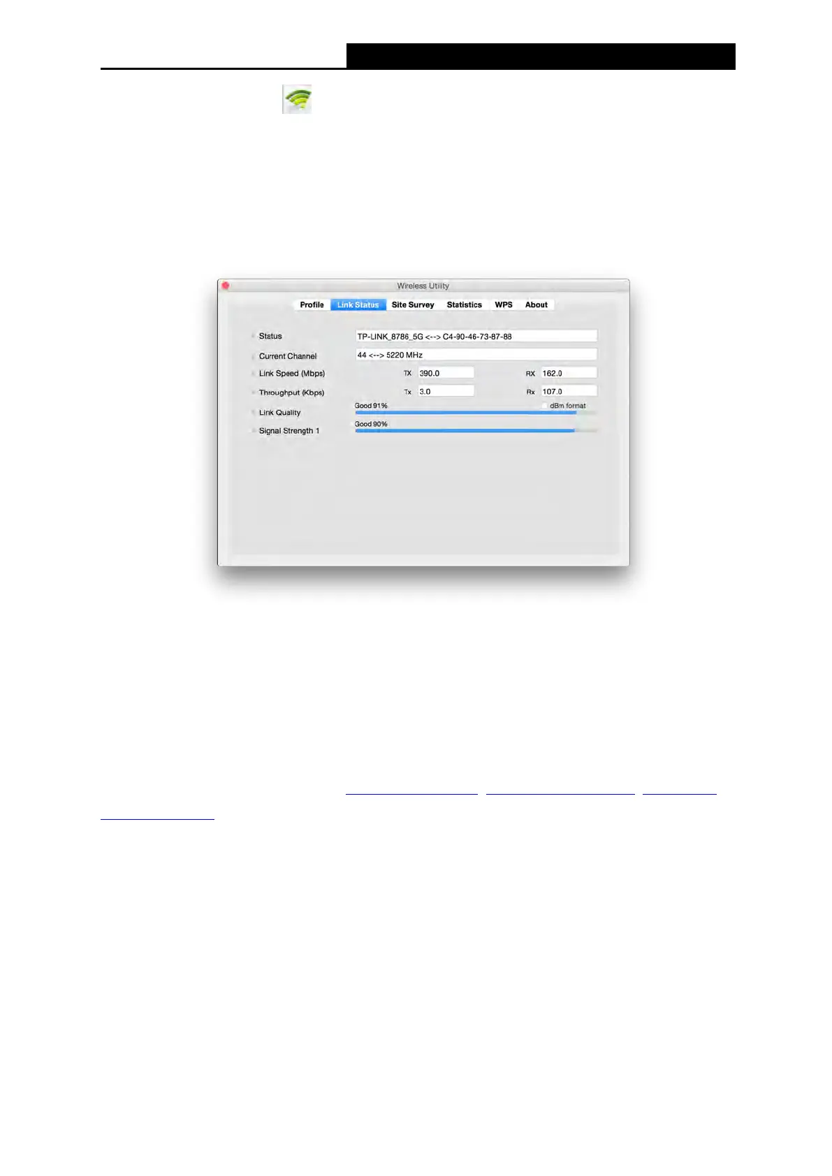 Open the TP-LINK Utility and click the Link Status or Profile tab to manage the