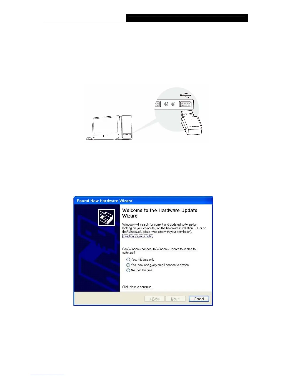 'Found New Hardware Wizard' (as shown in Figure 2-1); please click Cancel,