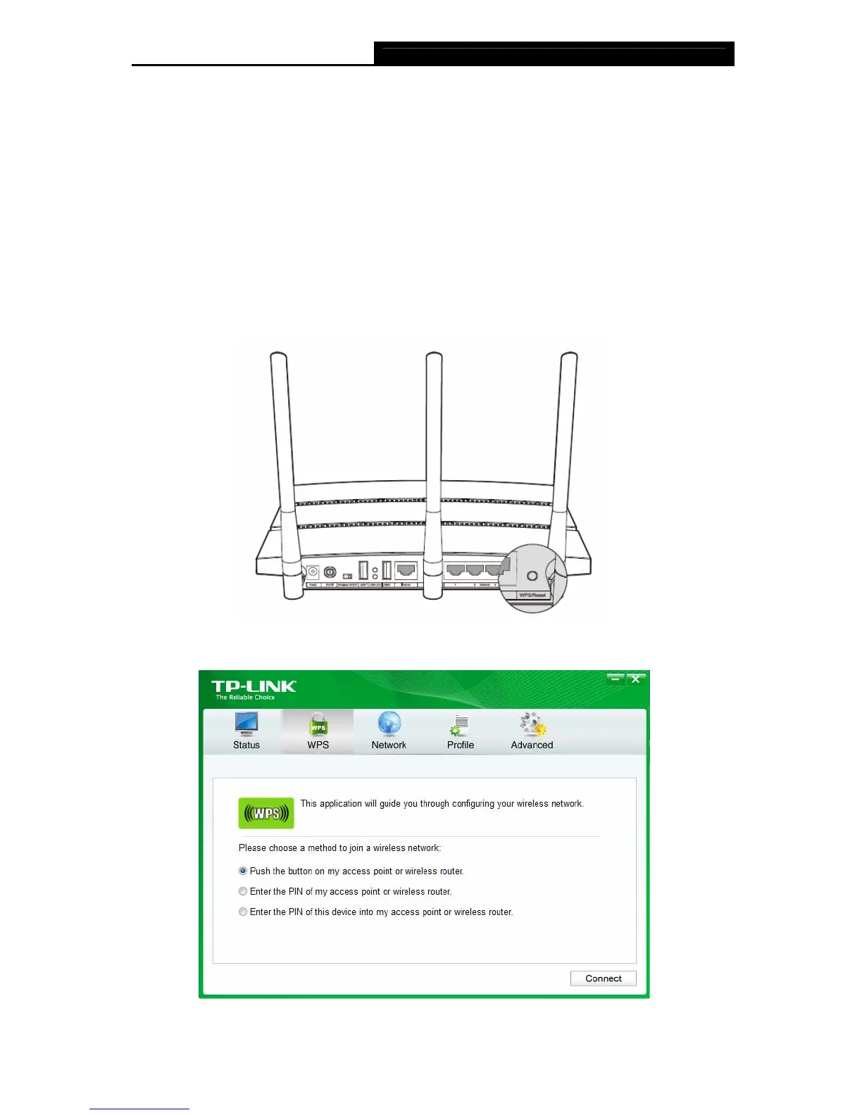(PBC) method or PIN method. Three WPS connection methods are listed in the following parts.