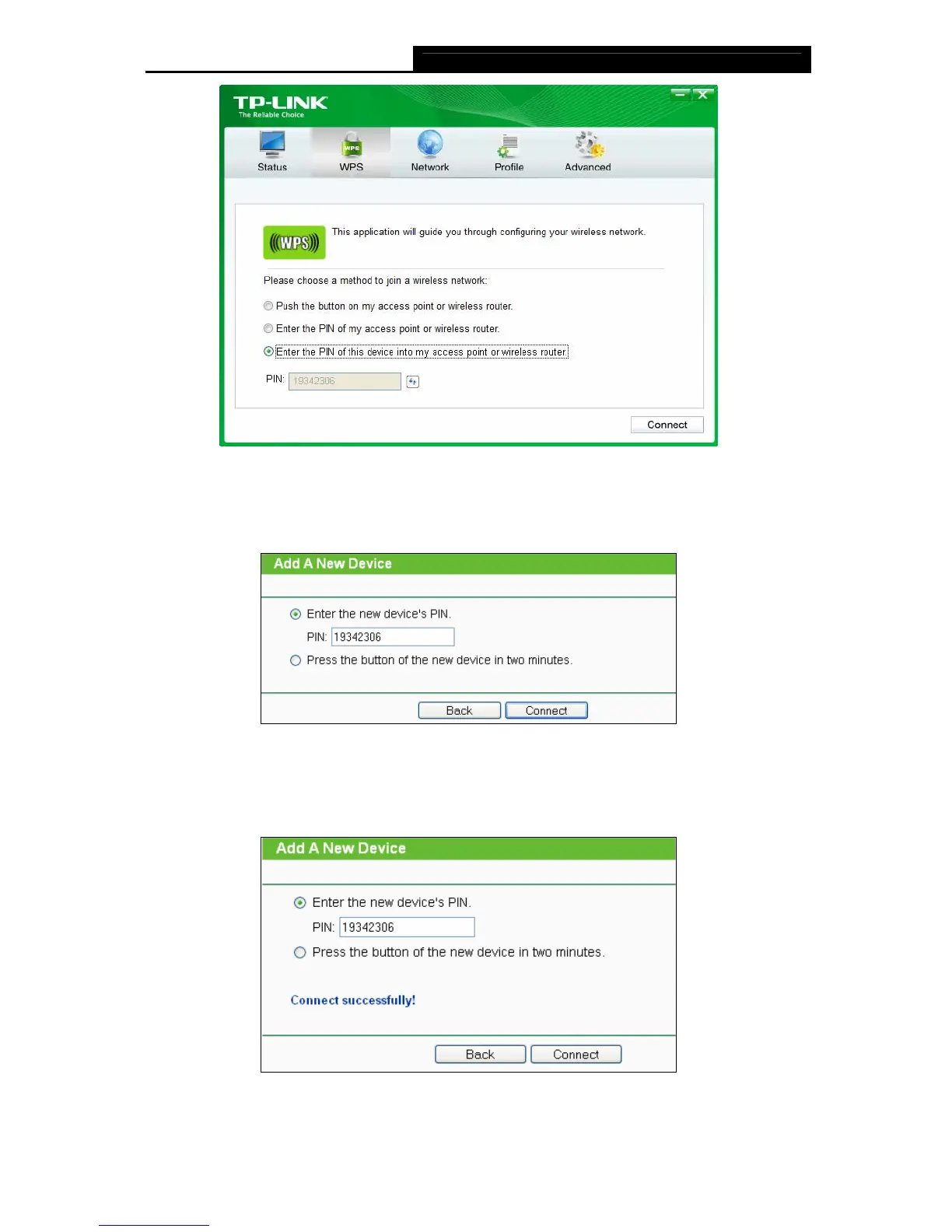 3. When Connect successfully appears on the screen (as shown in Figure 3-16), the WPS