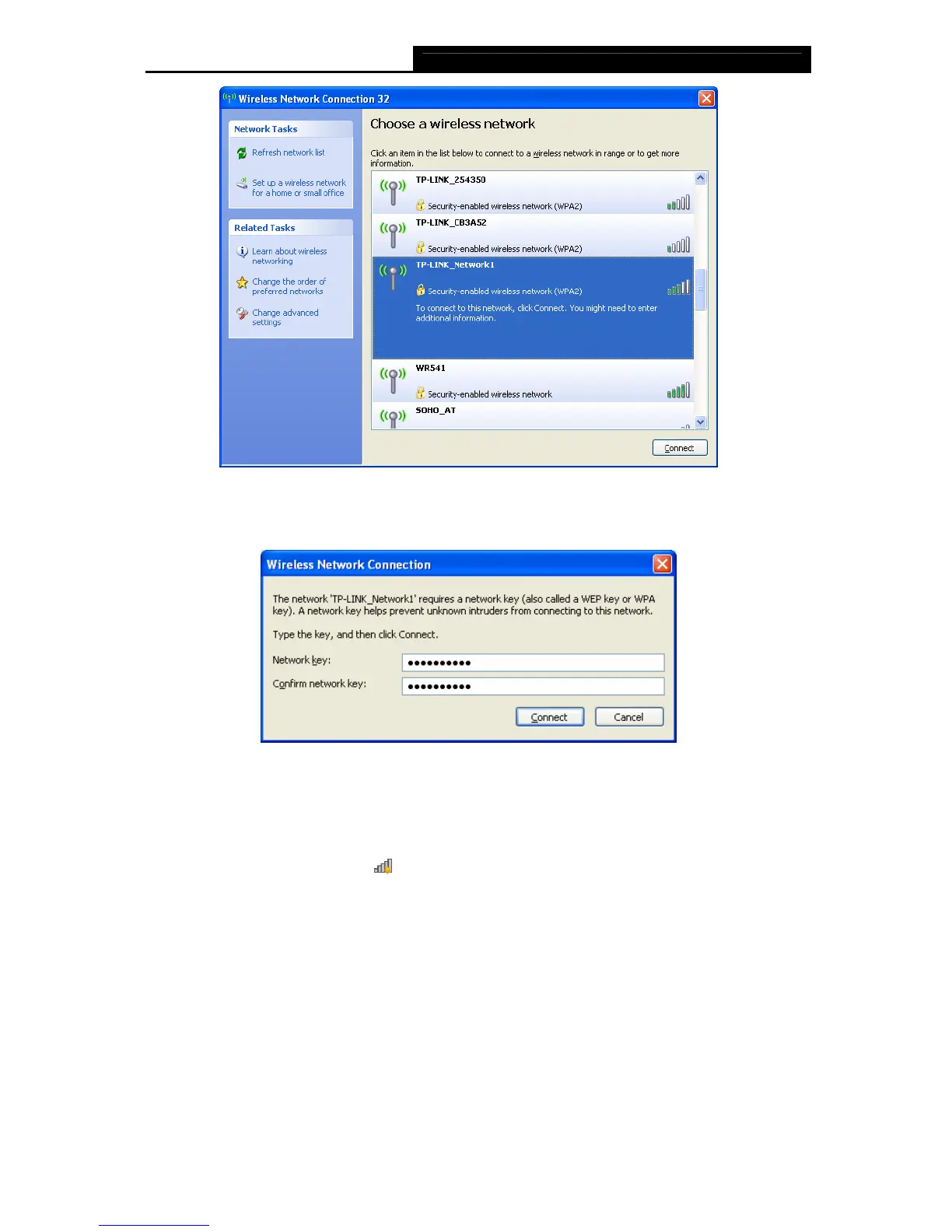 4. If the network is security-enabled, you will be prompted to enter the key as shown below. If