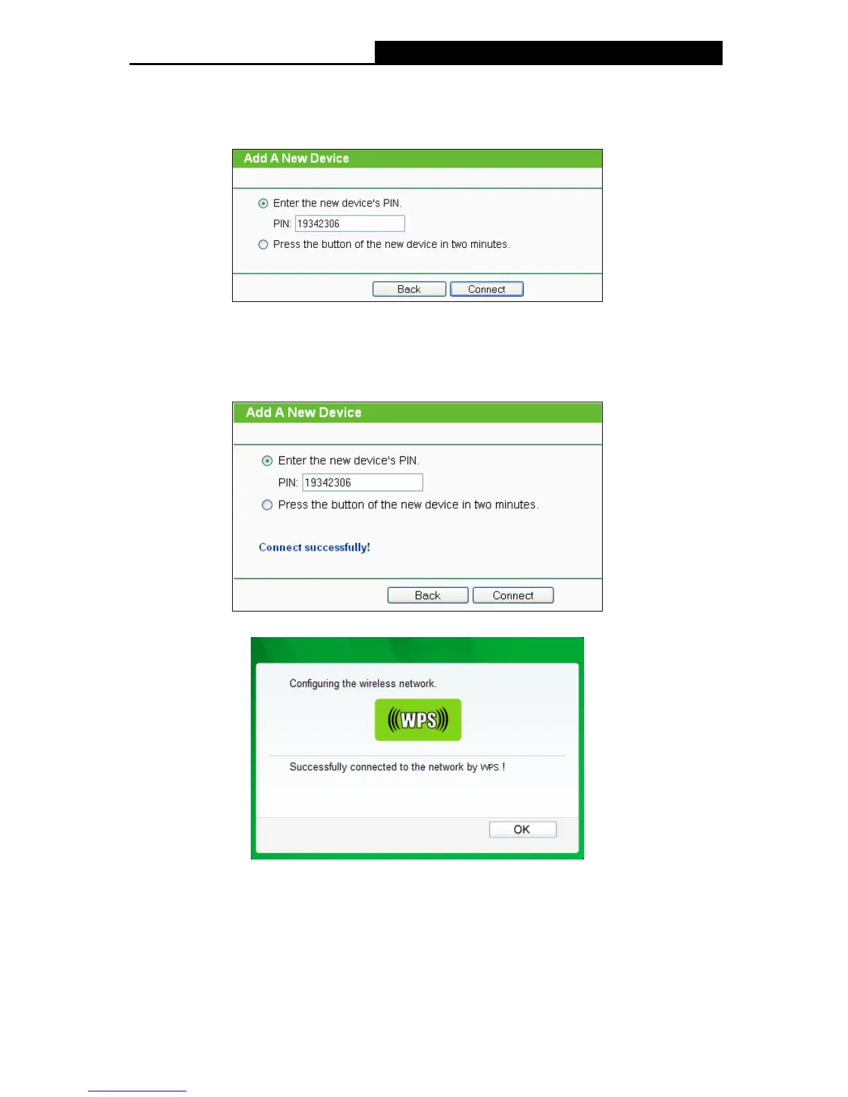 3. When Connect successfully appears on the screen (as shown in Figure 3-17), the WPS