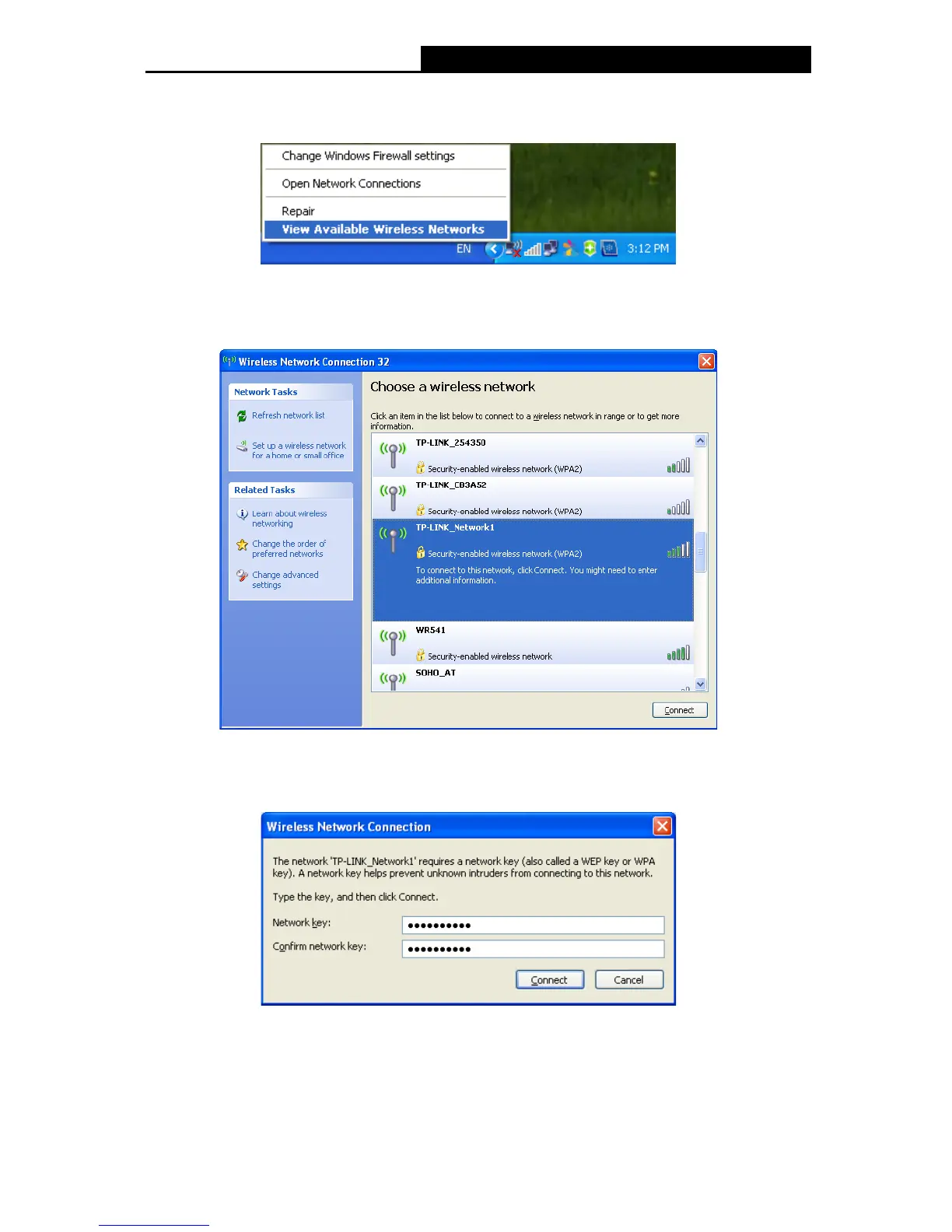 4. If the network is security-enabled, you will be prompted to enter the key as shown below. If