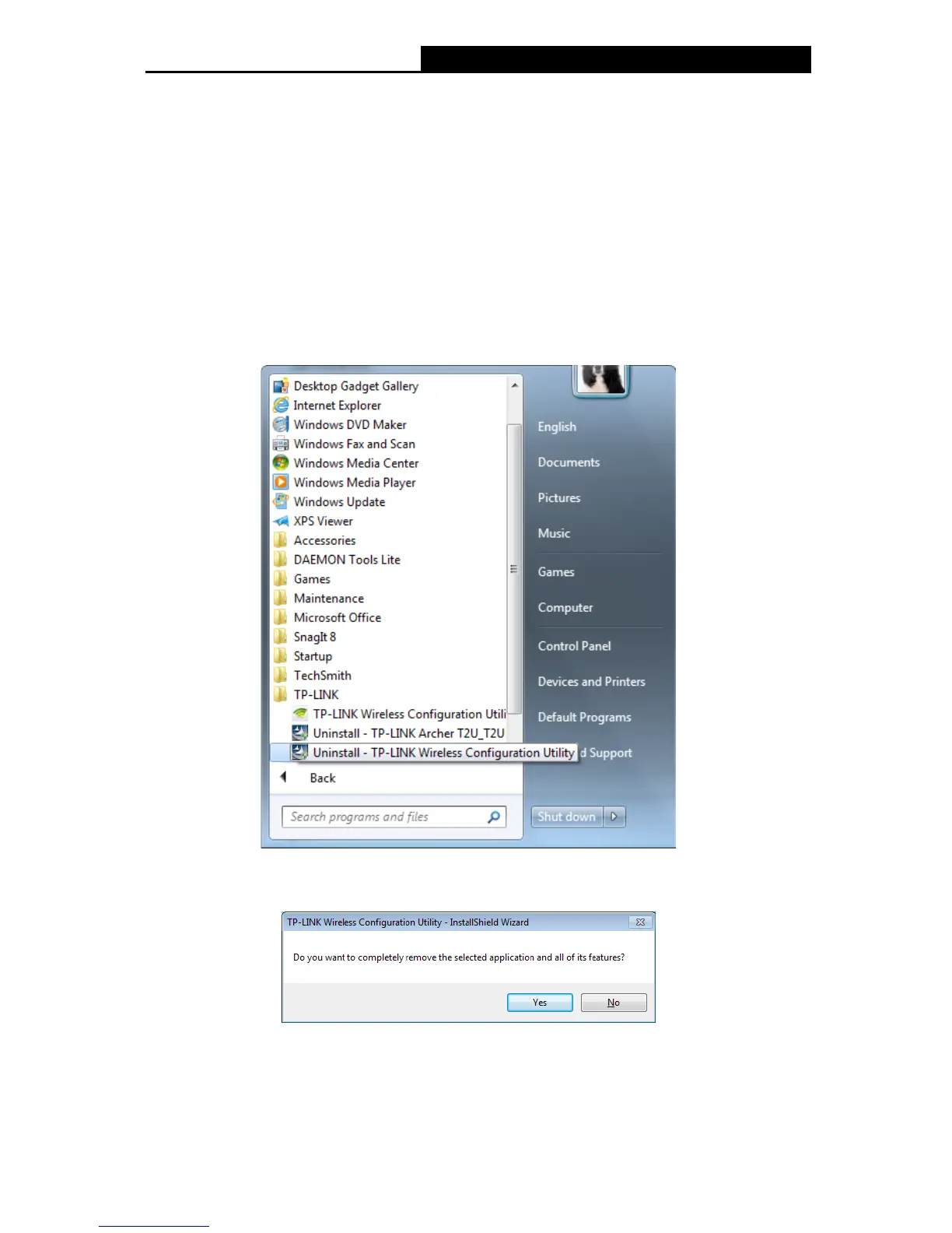 click Uninstall-TP-LINK Wireless Configuration Utility.