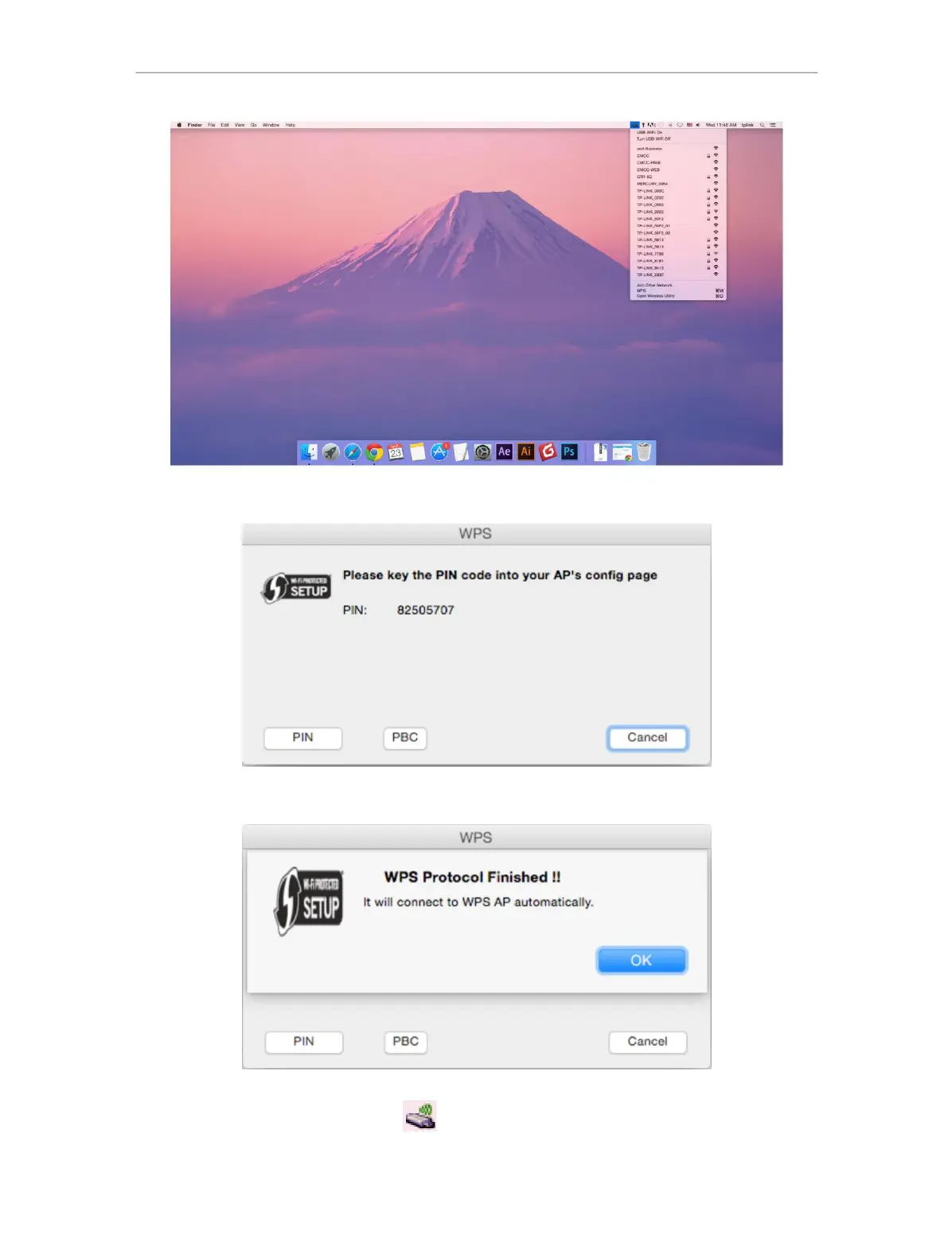 4. La seguente schermata indica una connessione riuscita tramite WPS. Fare clic su OK.