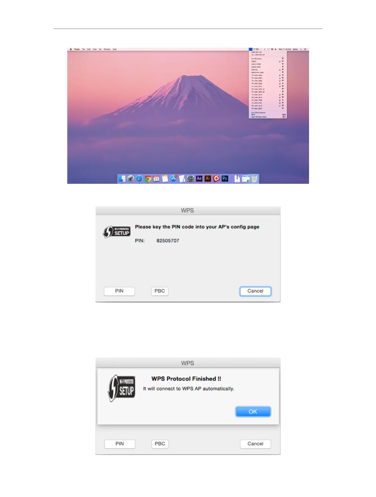 4. The following screen indicates a successful connection by WPS. Click OK.