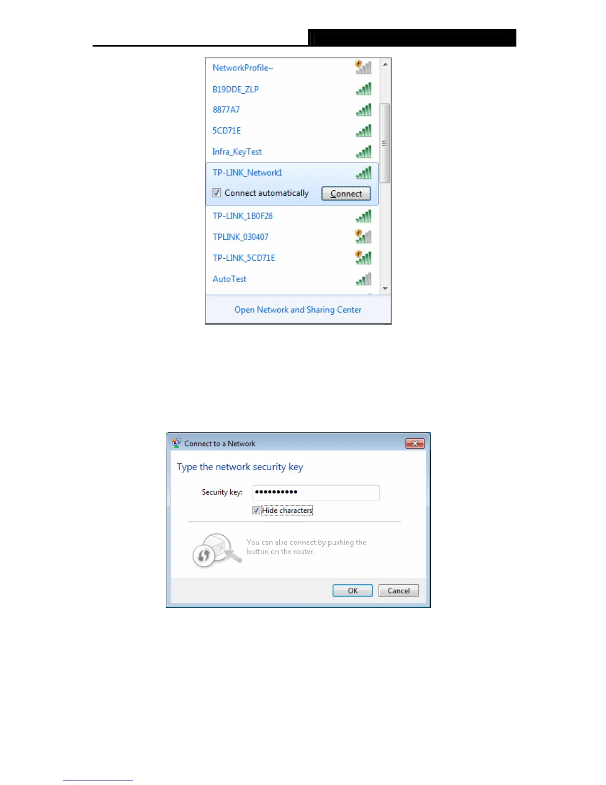 passphrase that is on your Router. Or push the WPS/QSS button on the Router or access
