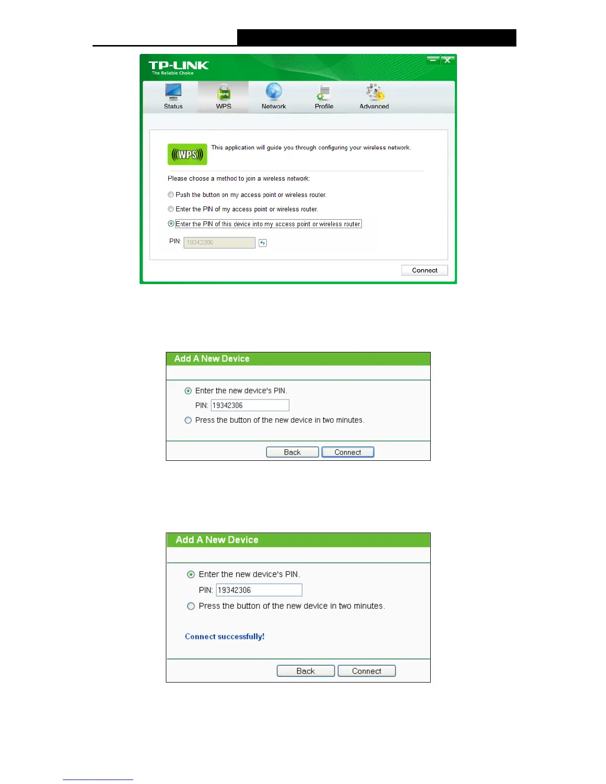 3. When Connect successfully appears on the screen (as shown in Figure 3-16), the WPS