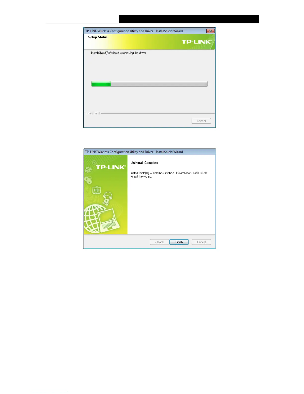 click Uninstall- TP-LINK Wireless Configuration Utility.