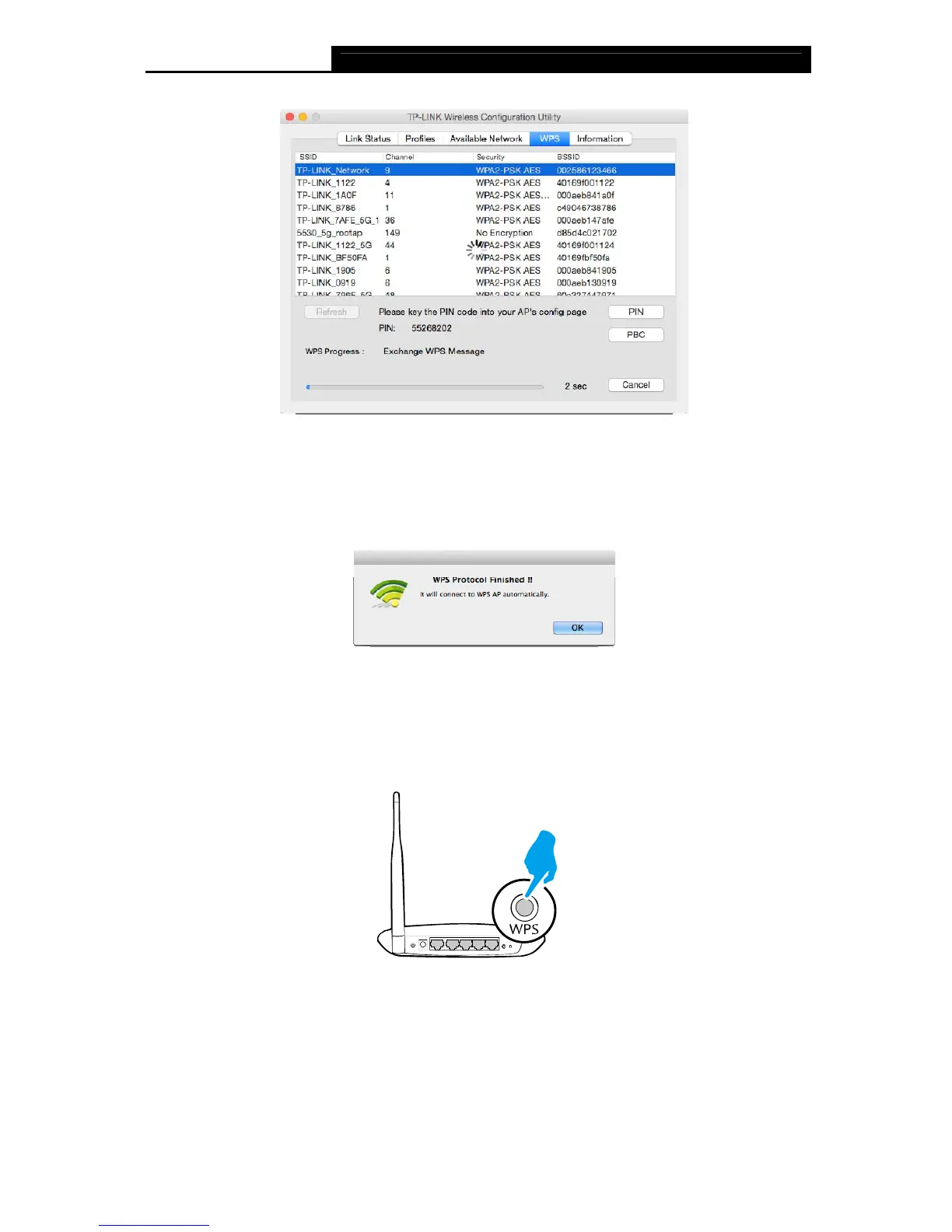 2. Within 2 minutes, open TP-LINK Utility and click WPS tab. Click PBC.