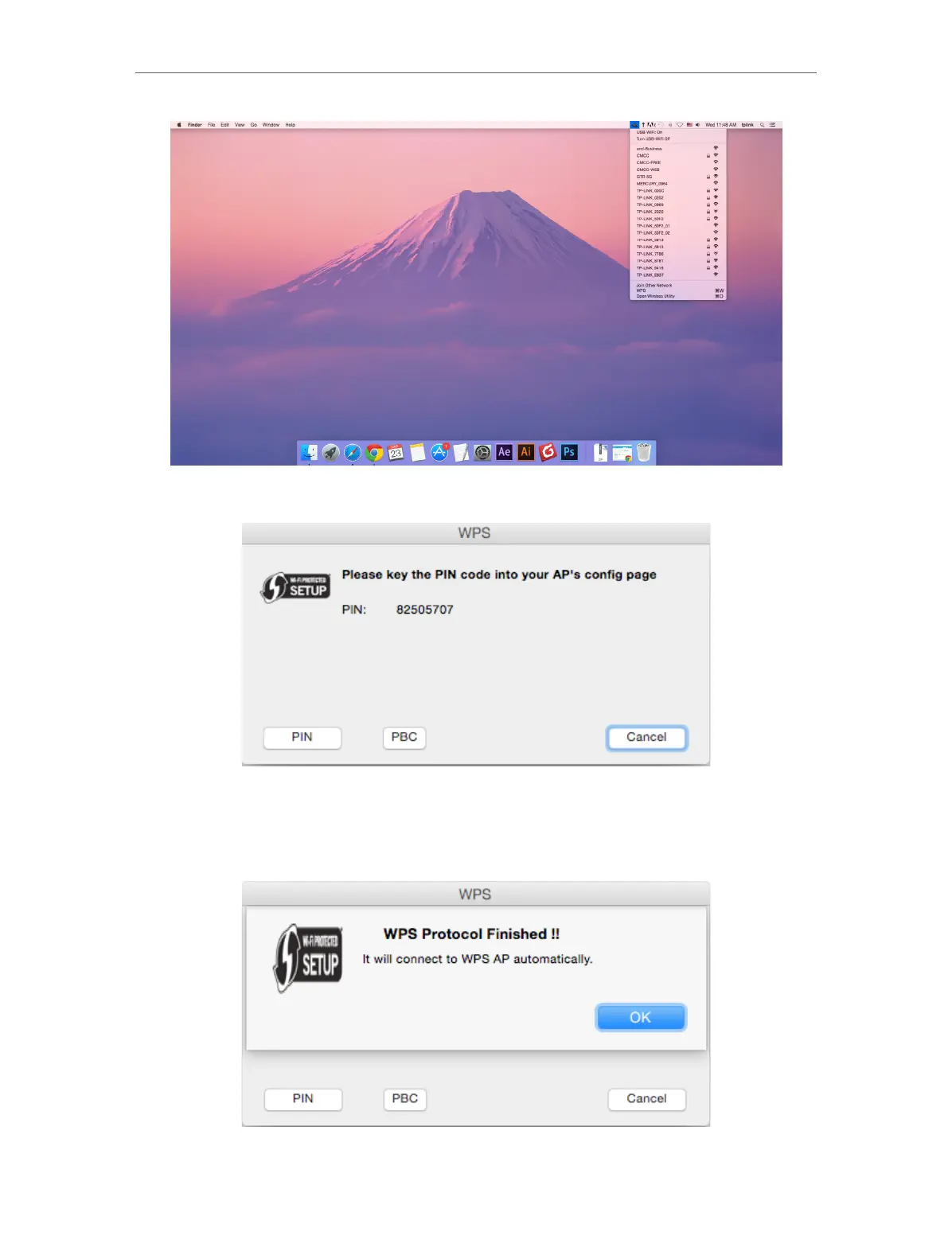 4. The following screen indicates a successful connection by WPS. Click OK.