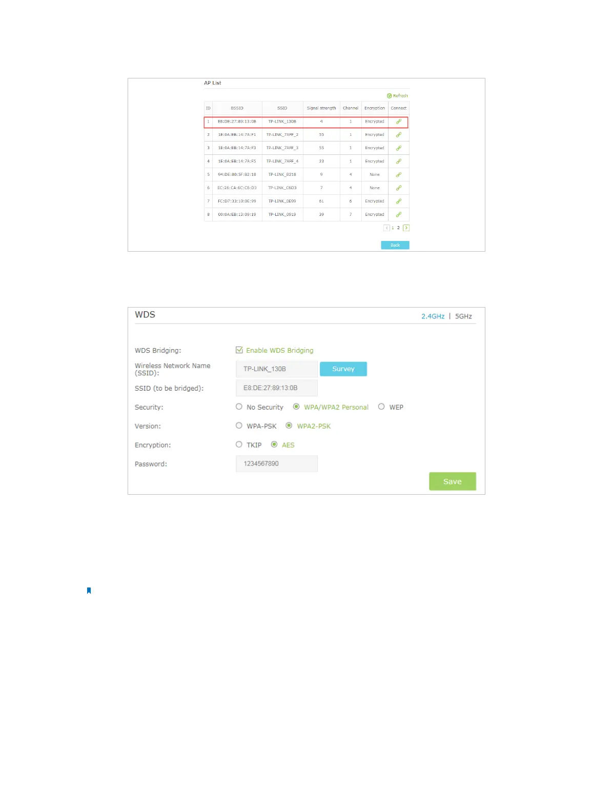 Note: The extended router (modem router) can have different SSID and password from the root router, you can