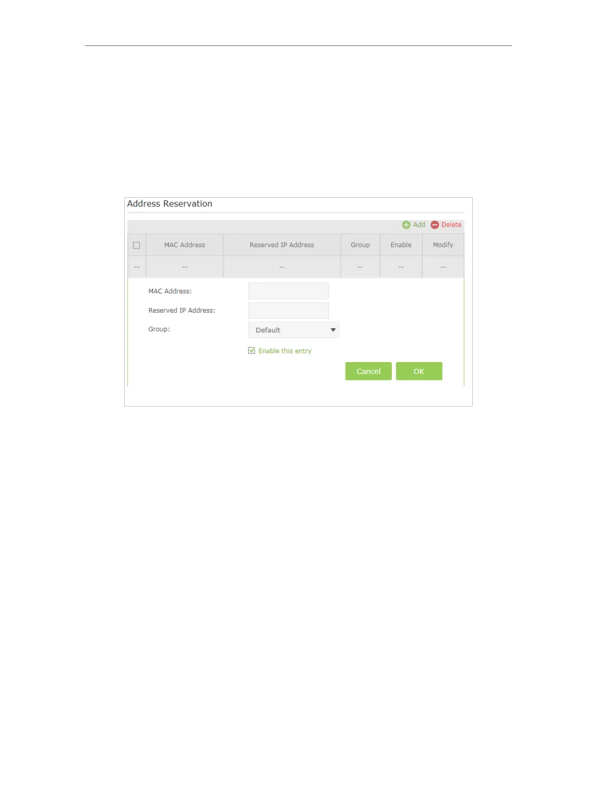 3. Scroll down to locate the Address Reservation table and click Add to add an address
