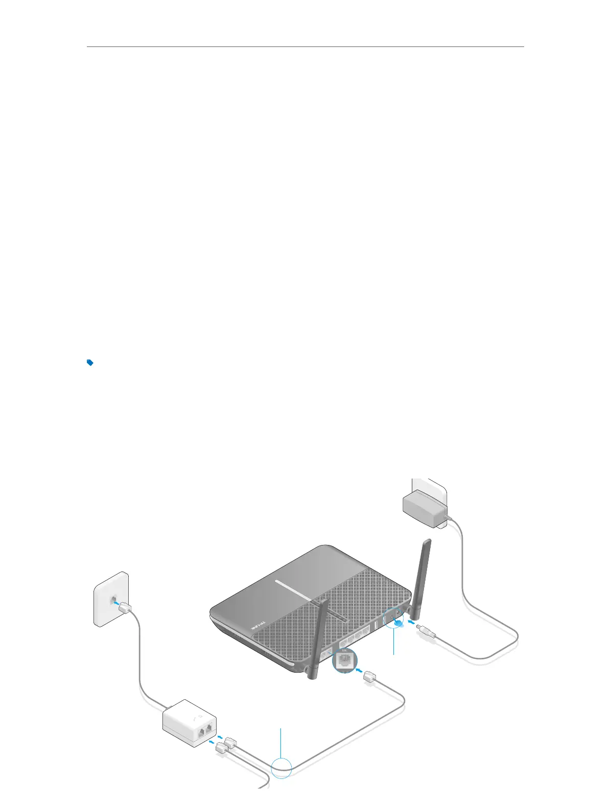 1. Connect the DSL line and power adapter. The electrical outlet shall be installed