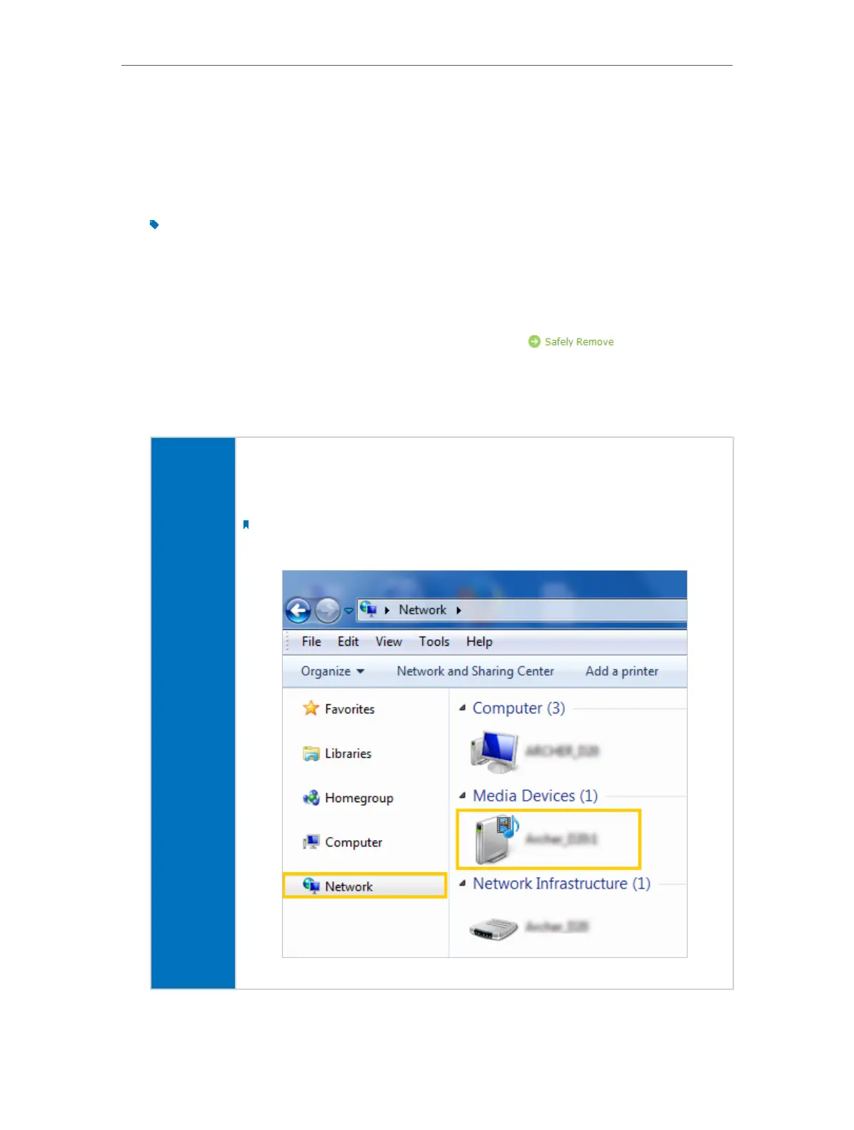 • Go to Computer > Network, then click the Media Server Name (Archer_model
