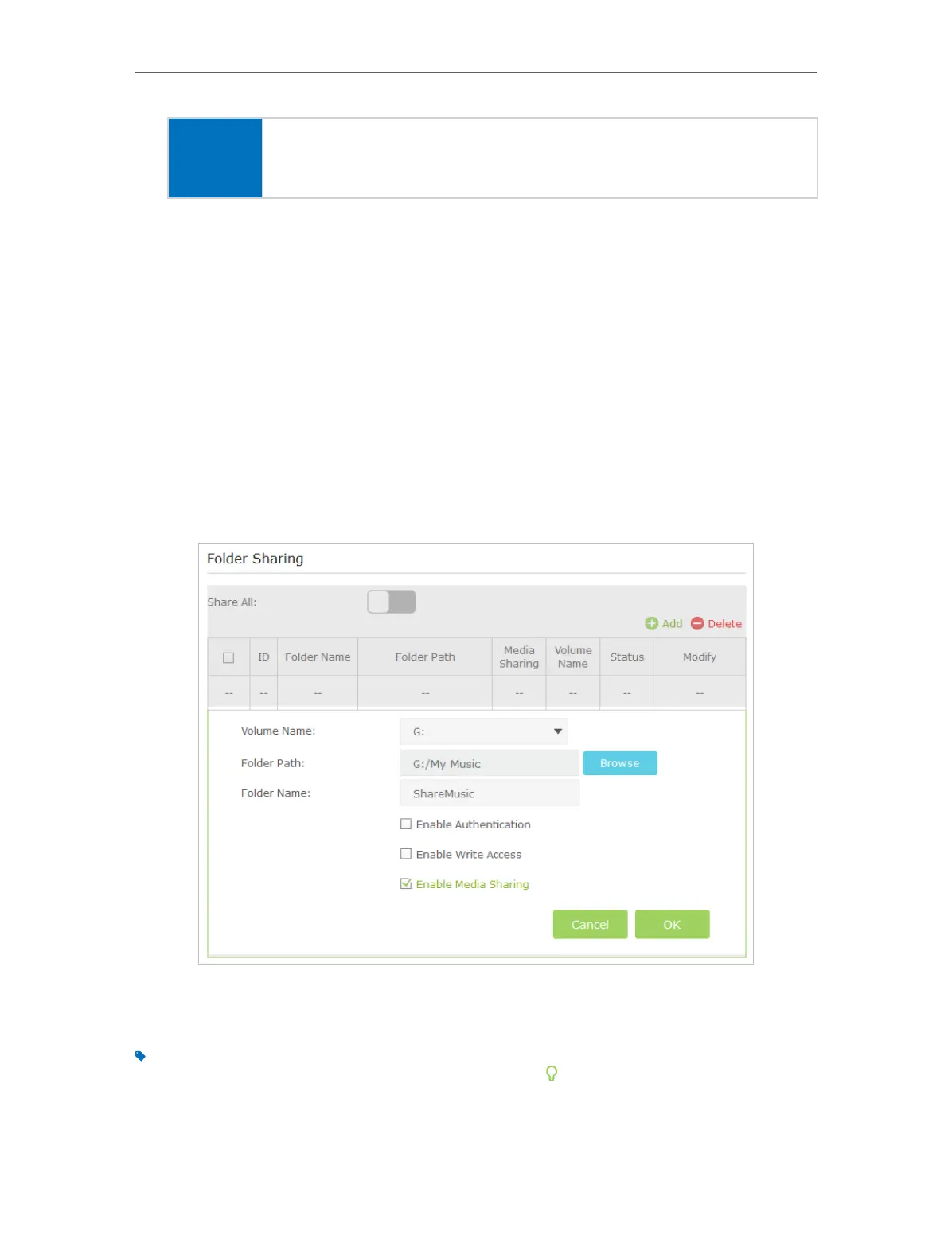 By default, Share All is enabled so all content on the USB disk is shared. If you want to
