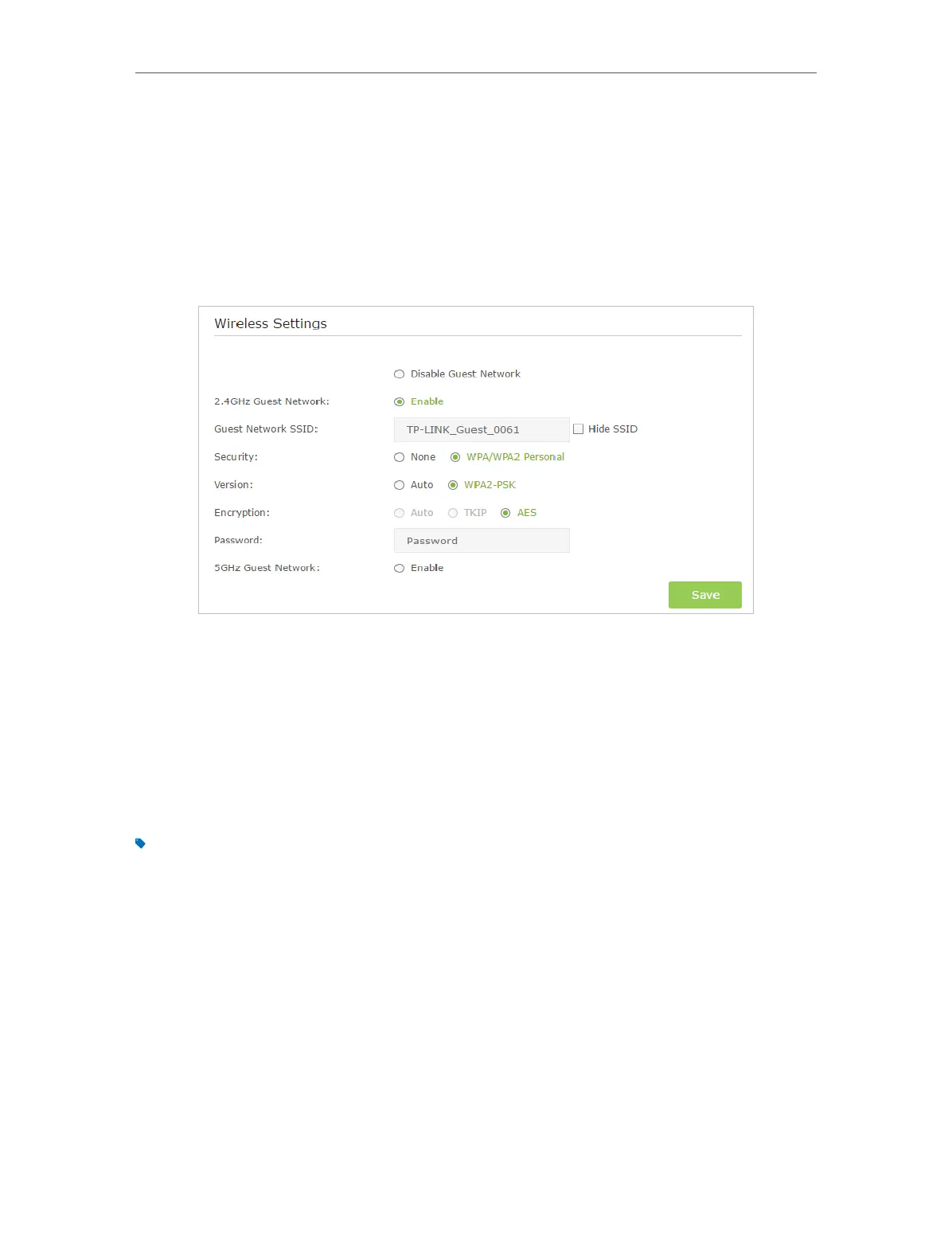 4. Click Save. Now your guests can access your guest network using the SSID and