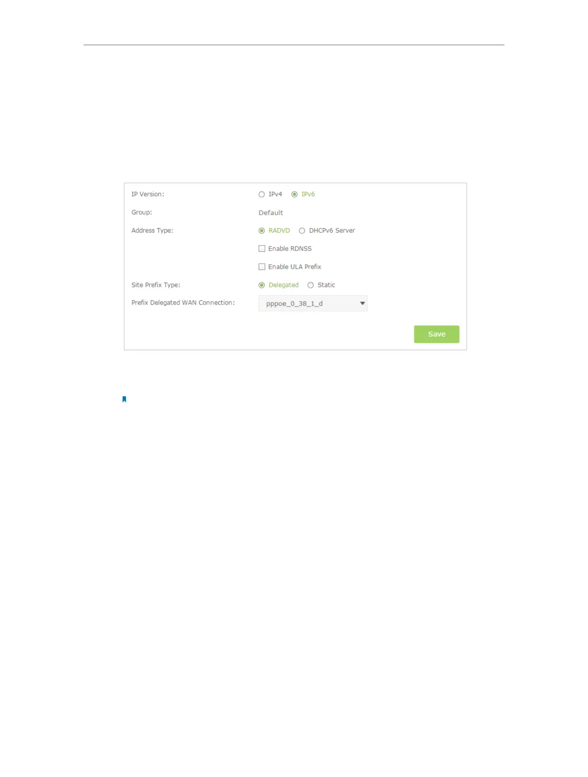 2 ) Keep Site Prefix Type as the default value Delegated. If your ISP has provided a