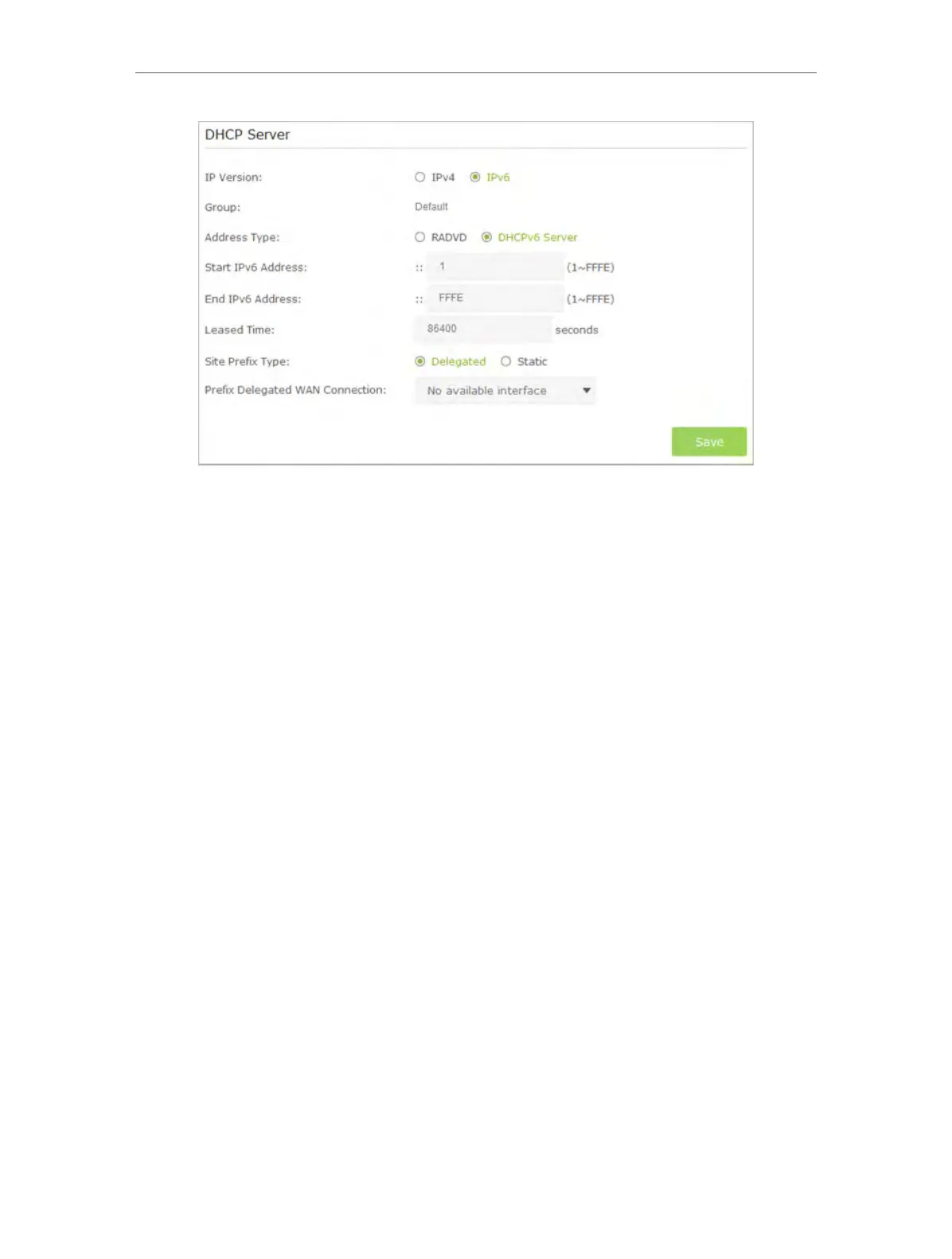 1 ) Select the DHCPv6 Server address type to make the modem router assign IPv6