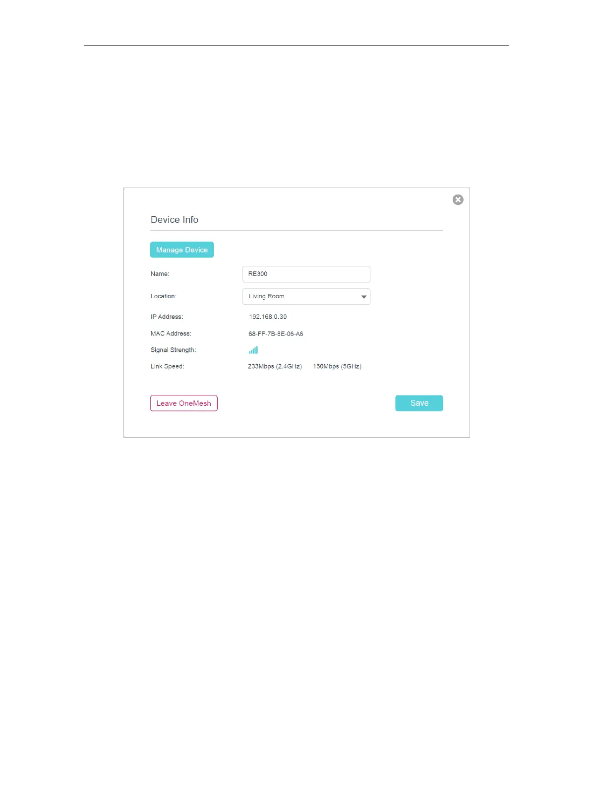 • Click Manage Device to redirect to the web mangement page of this OneMesh